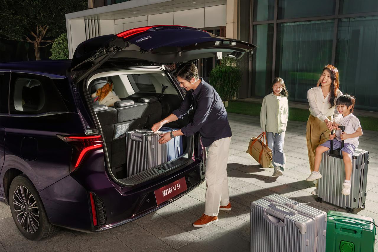 大空间,超容量,高容纳; 星海V9的百变空间,全家行李都能装; 硬控你的全家出行; 带你把每一程的「幸福额度」拉满!