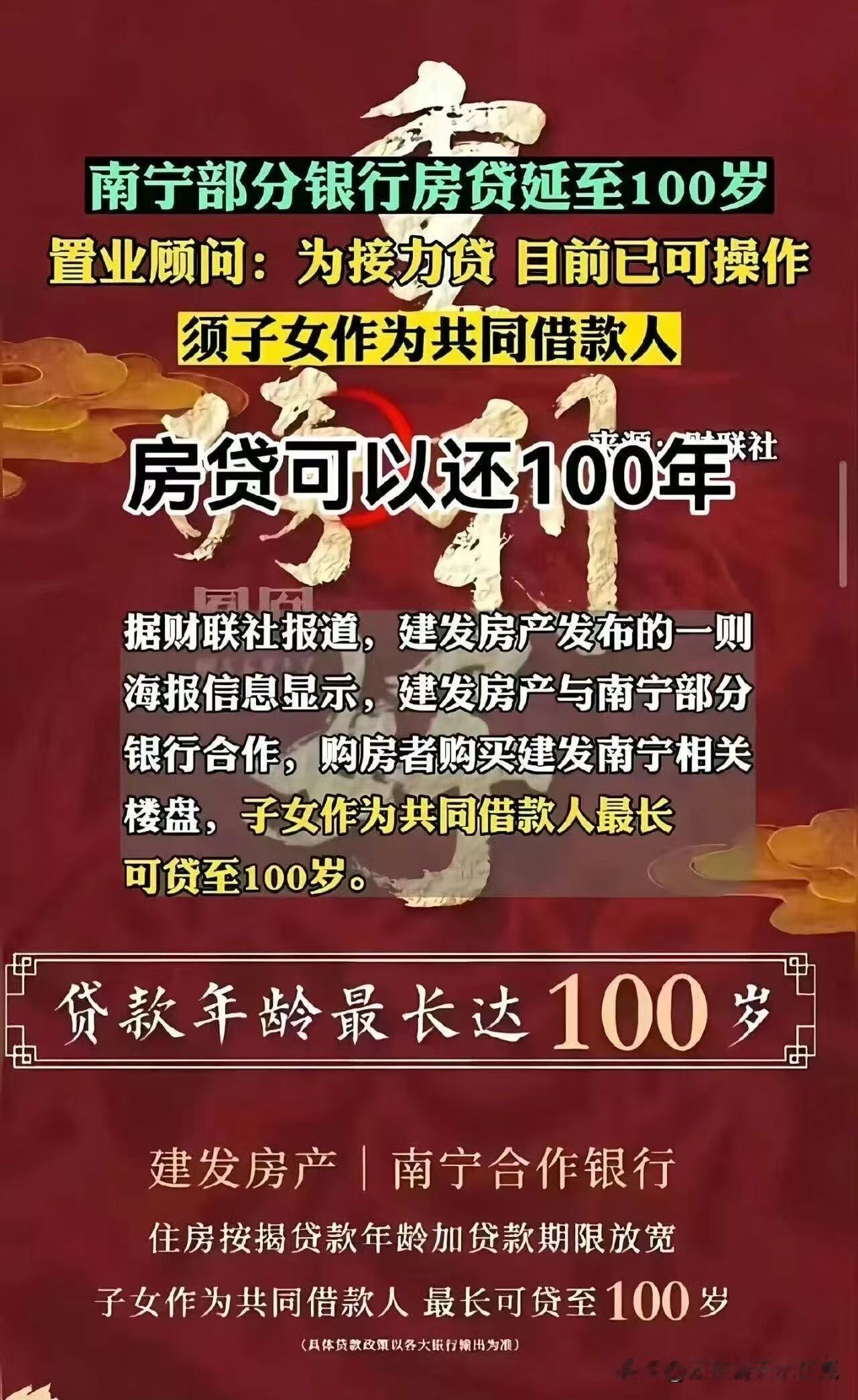 南宁有银行推出贷款,子女作为共同借款人,最长可以贷至100岁…… 对此,吃瓜如我只有一句,房子的寿命都不一定有你的贷款时间长。