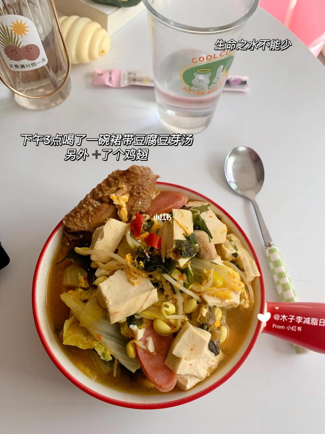 🥣午餐:裙带豆腐豆芽汤|白开水