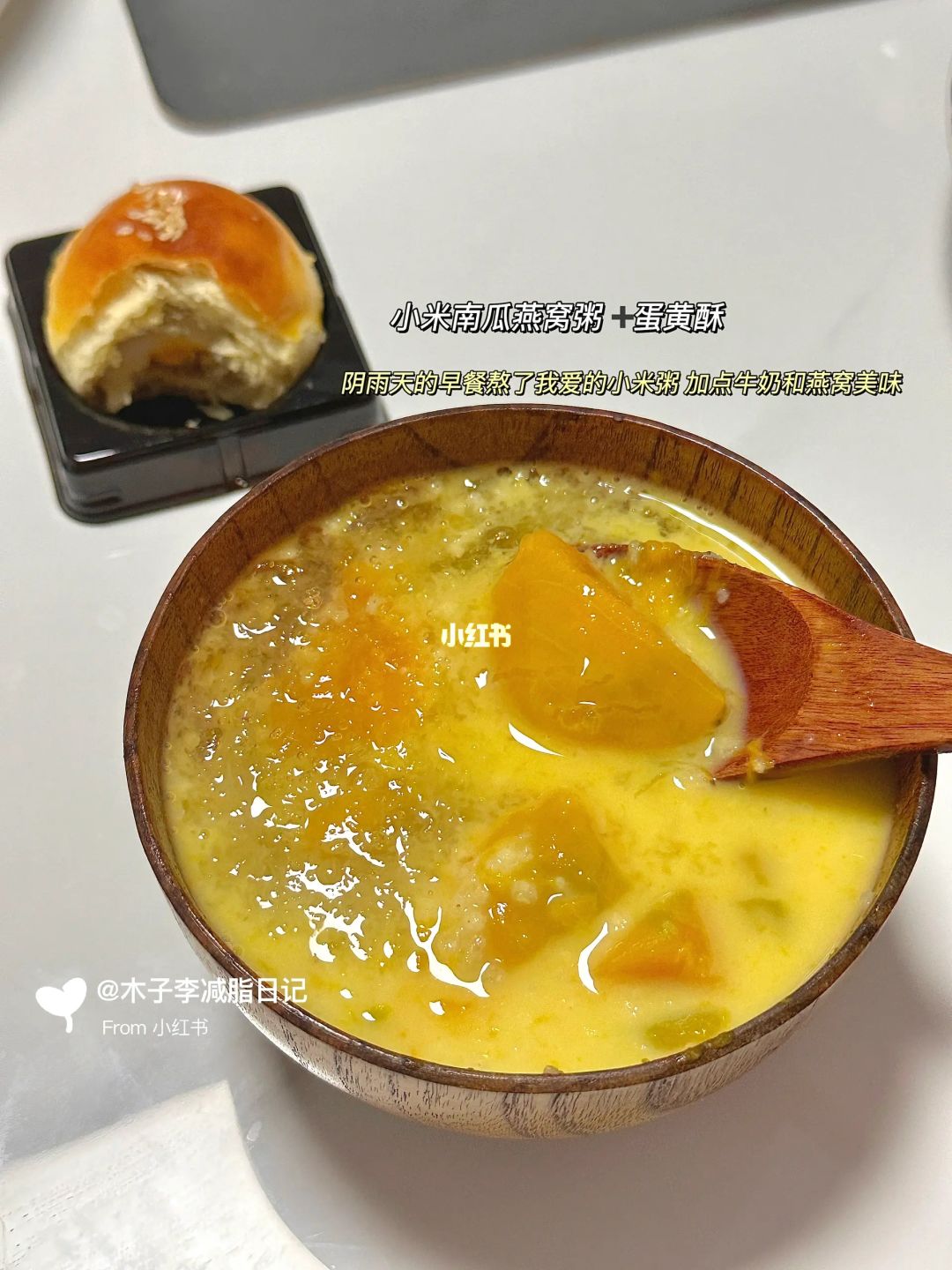 ●原体重:120斤 | 现重:90斤 | 已↓30斤 - 🥣早:蛋黄酥 小米南瓜粥 🥣午:炒河粉 鲜牛奶 南瓜车轮包 泡芙冰淇淋 🥣晚:杂粮煎饼一半 鸡丝辣汤 、 💧喝水2000ml 🏋️运动:🈚 - 💭早起下雨天不想吃面包了 就熬个小米粥喝 吃个蛋黄酥 坠近好馋蛋黄酥的,这次买的不好吃 还是现烤的更香!中午吃了炒河粉 太满足啦!每次馋粉就想吃这个! 现在状态就是开心吃 开心减 !