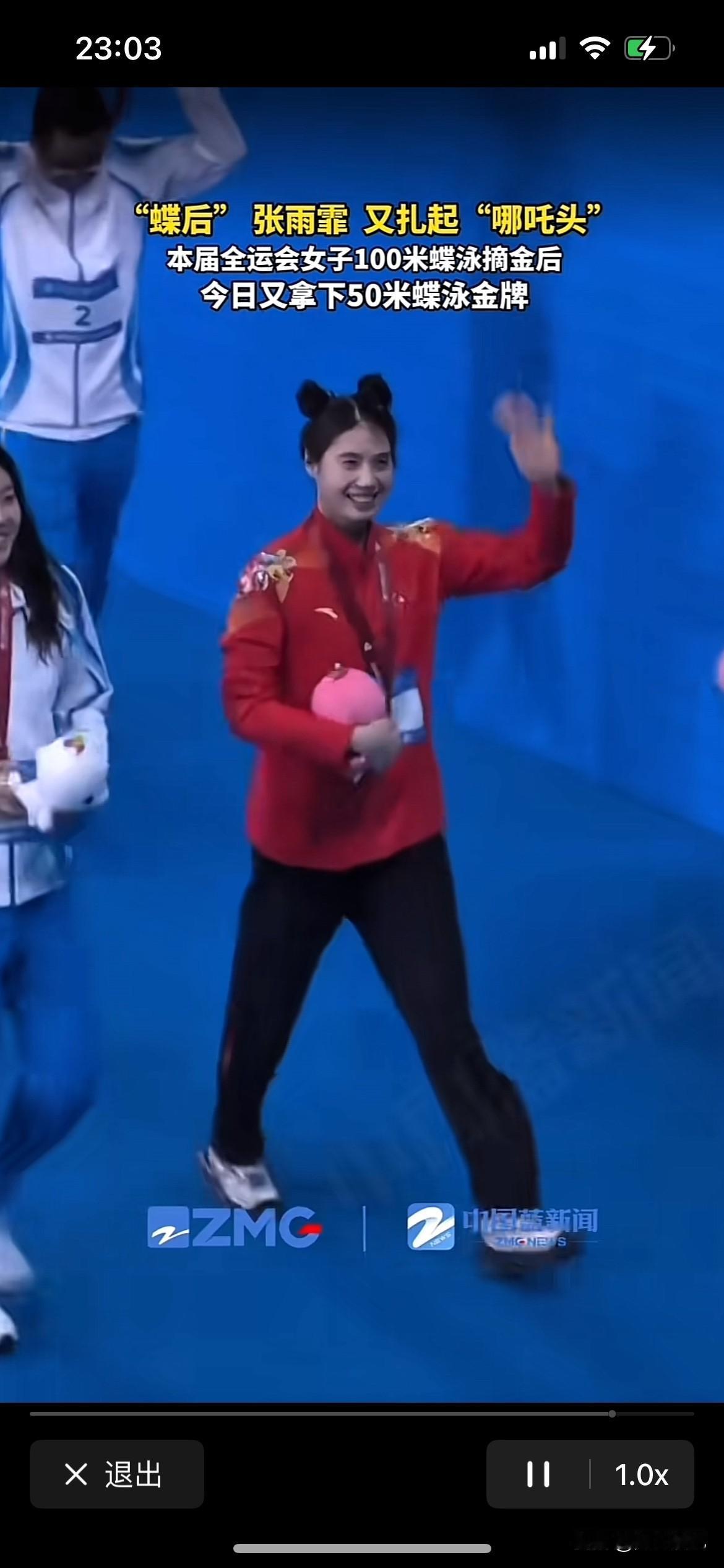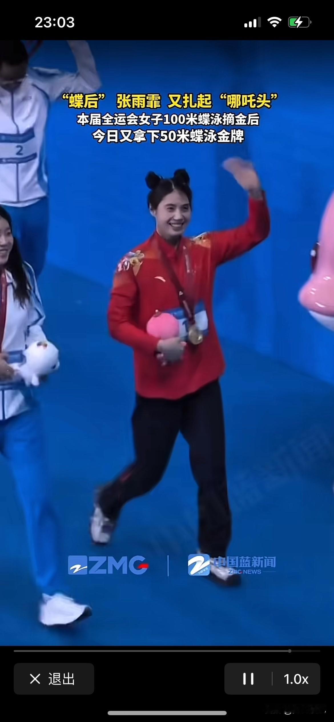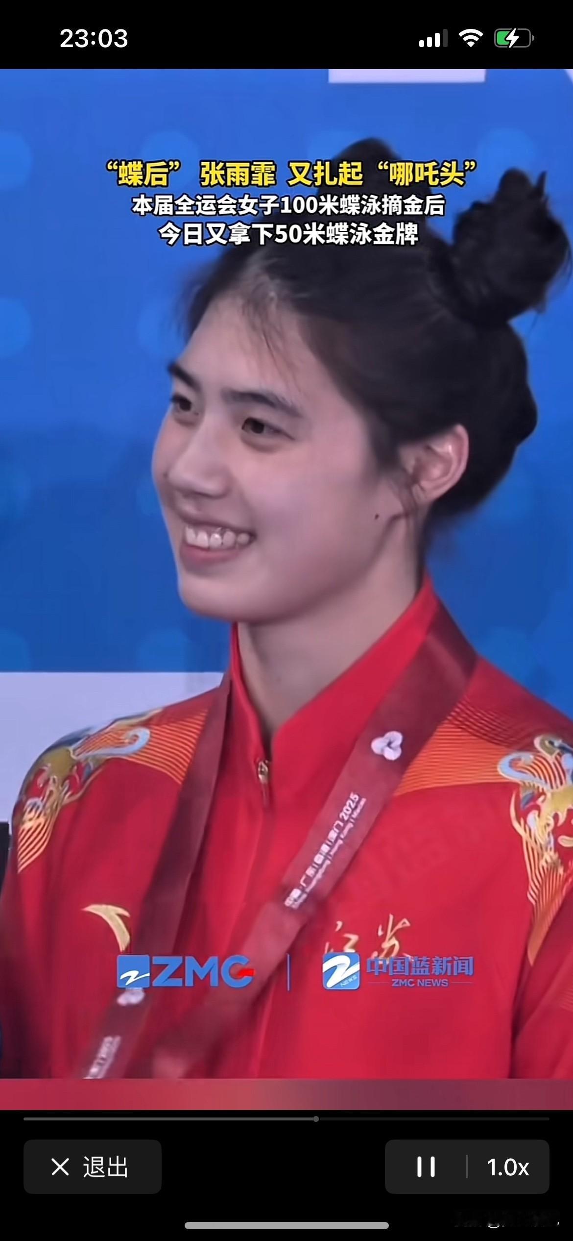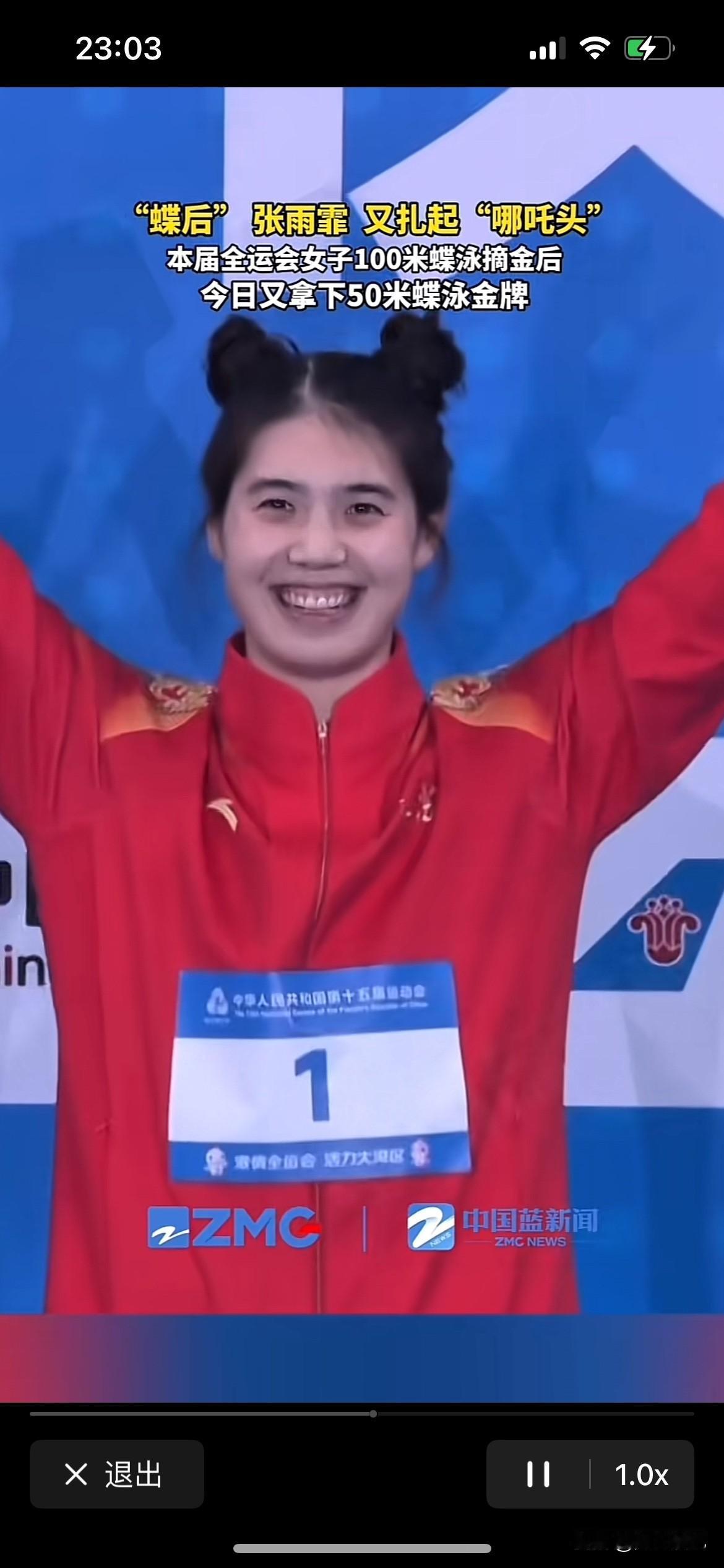 张雨霏老师拿下冠军后又开始调皮了,扎起“哪吒头”出来领奖,不过这个头型她还是能驾驭得住,又好看又可爱,笑起来如沐春风的感觉,讨人喜欢。 这张笑脸看一眼就让人喜欢上,灿烂的笑容治愈人,她能力这么出众,还这么可爱,真让人羡慕,长相有力量很柔和。