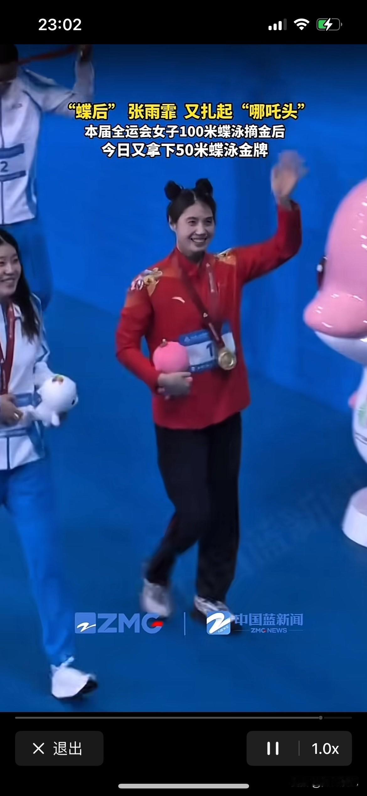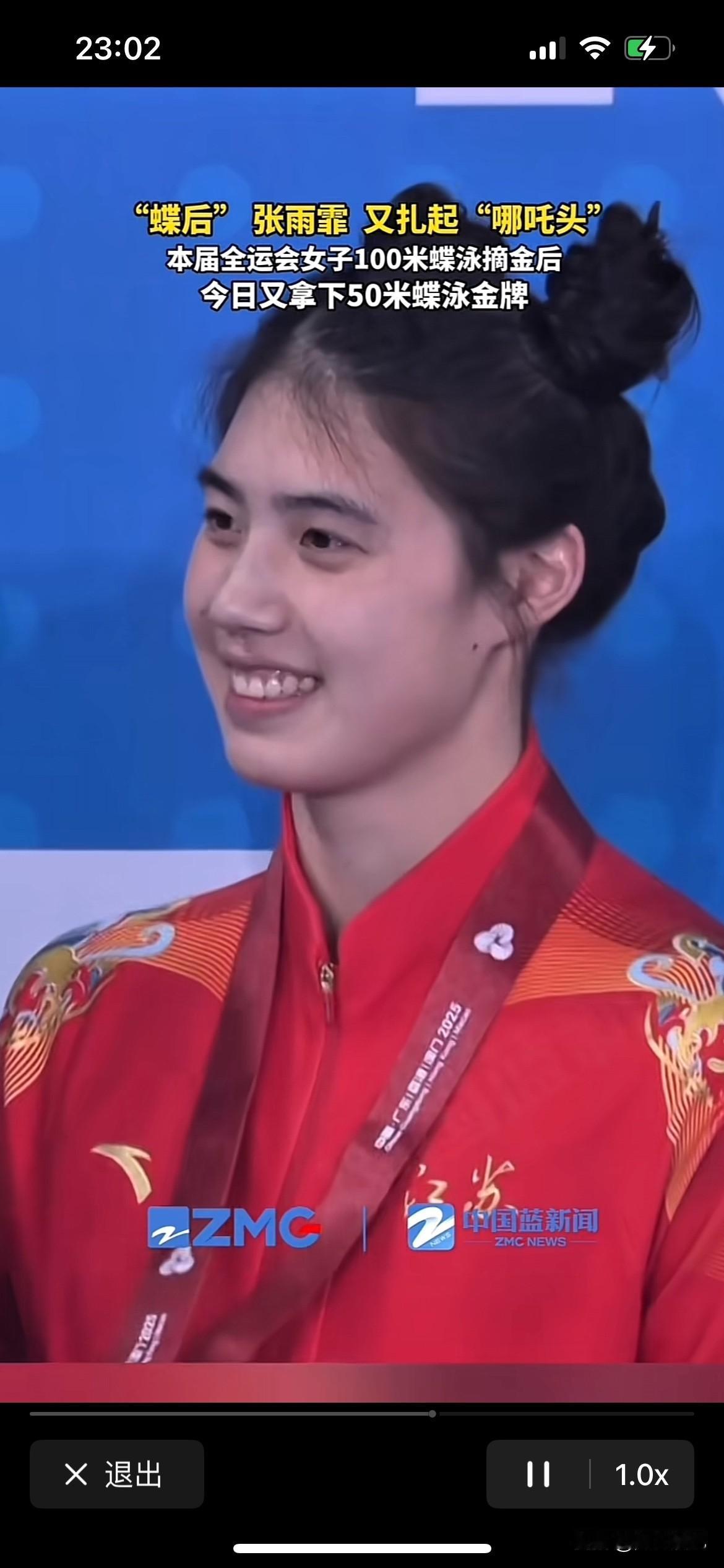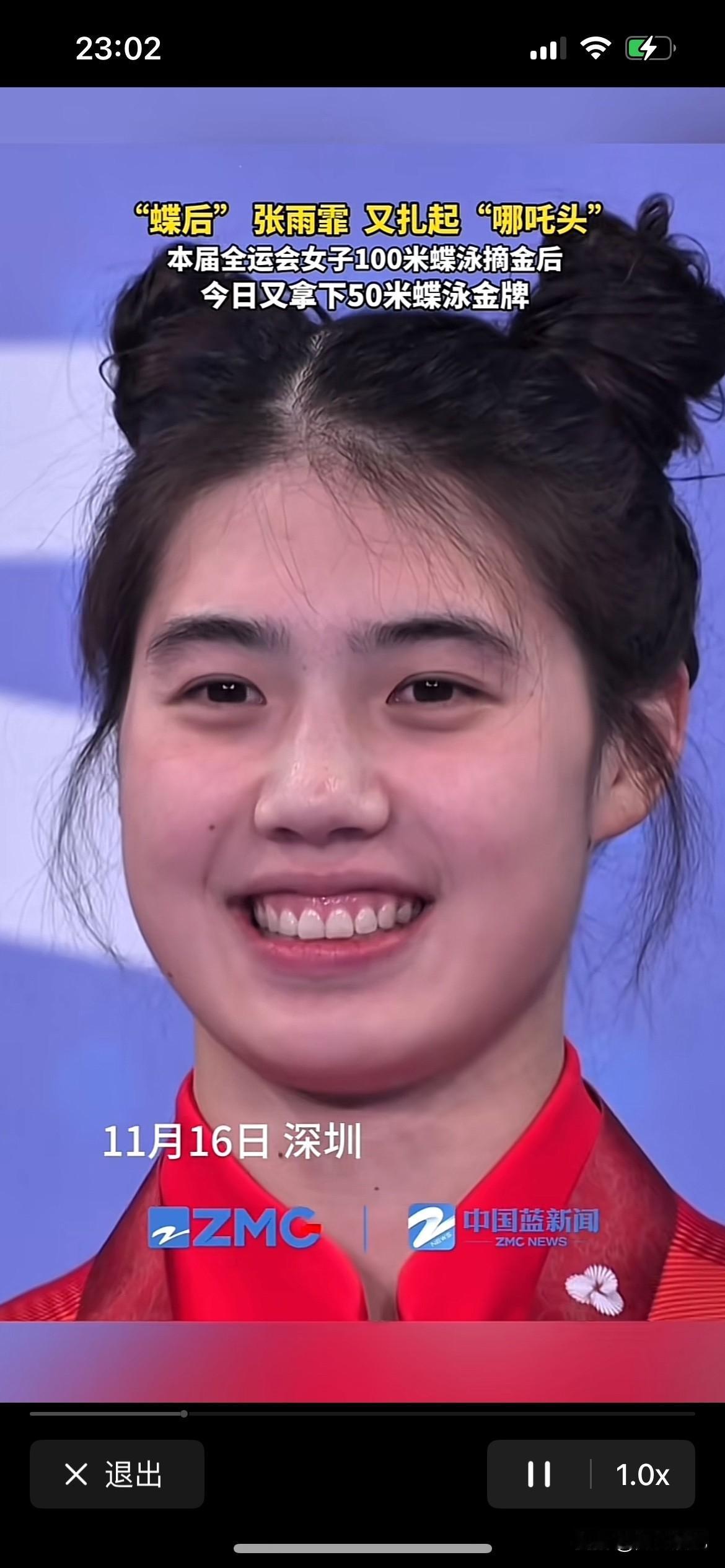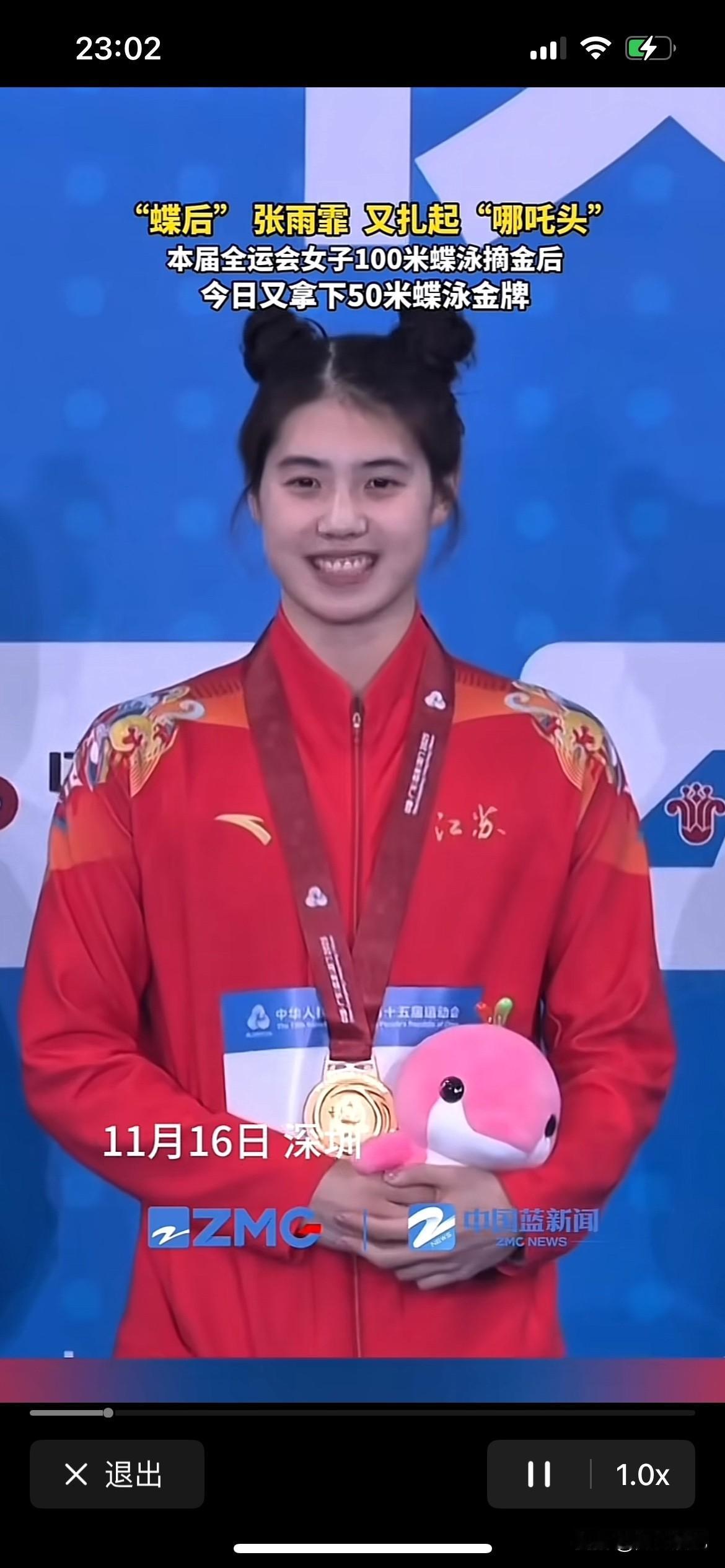 张雨霏老师拿下冠军后又开始调皮了,扎起“哪吒头”出来领奖,不过这个头型她还是能驾驭得住,又好看又可爱,笑起来如沐春风的感觉,讨人喜欢。 这张笑脸看一眼就让人喜欢上,灿烂的笑容治愈人,她能力这么出众,还这么可爱,真让人羡慕,长相有力量很柔和。