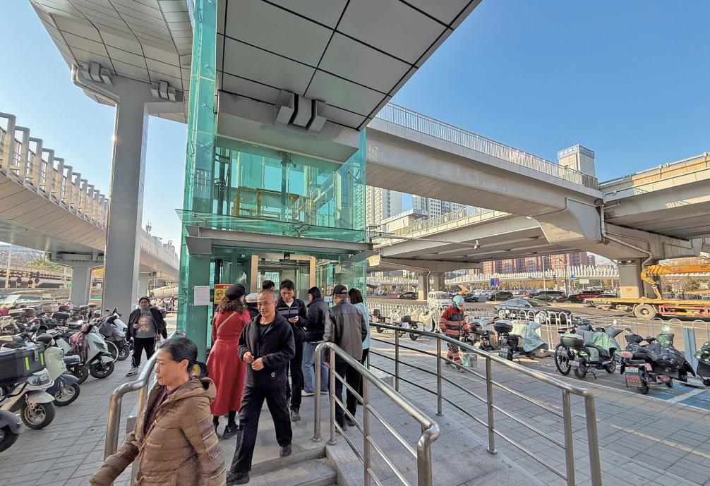 金安桥路口建设“口”字形天桥设置了无障碍电梯。