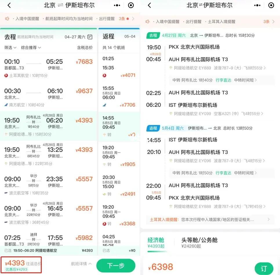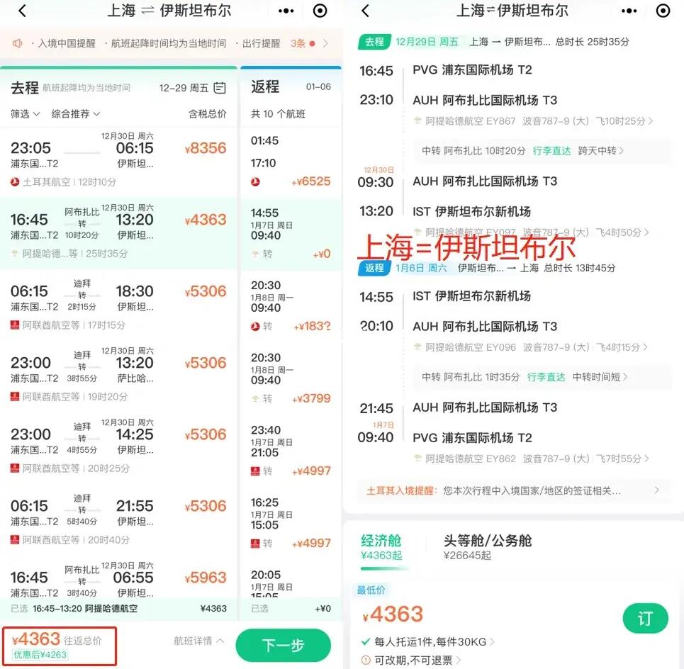 我是发光体,环球53国,关注我,带你看世界! 这次给大家推荐的是国内多地往返欧洲、埃及及土耳其含税4K 航司:阿提哈德和沙特(均是不错的航司) - 具体日期:明年五一及春节 - 本人只做旅游信息分享,有问题可以留言!