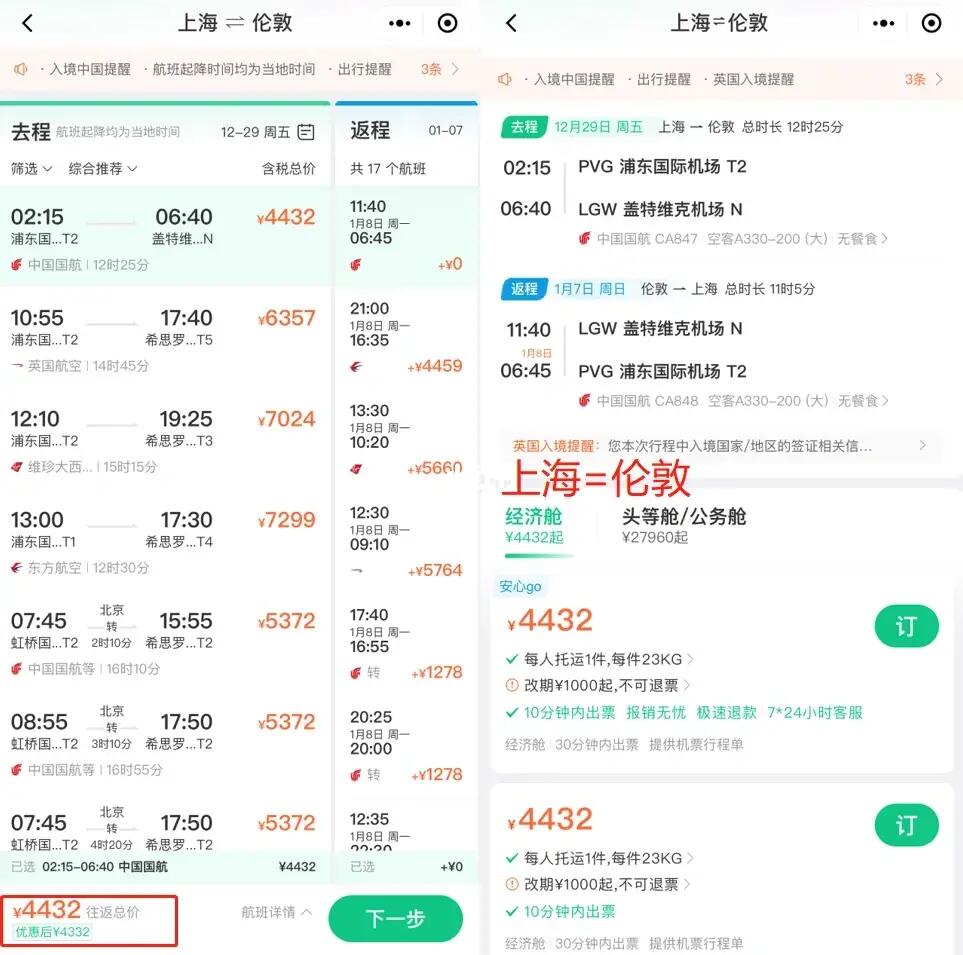 多地飞英国伦敦含税只要1900+太便宜了冲!