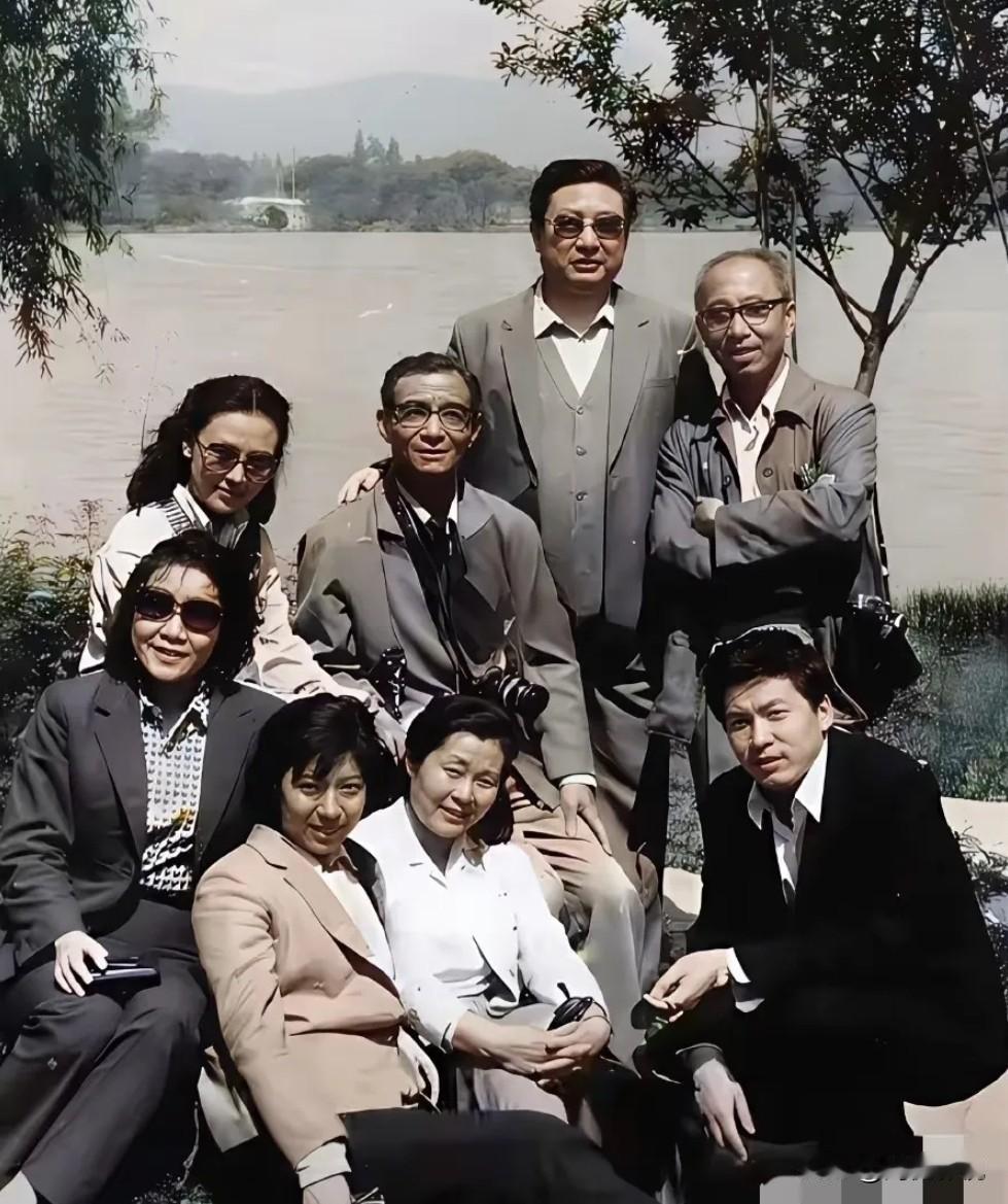 后排就认得出《渡江侦查记》里扮演的敌情报处长陈述。前排坐着的有歌唱家关牧村和男高音佟铁鑫,而左一戴墨镜的是谁?乌黑的披肩烫发头,戴着墨镜,西装笔挺,能和歌唱家关牧村、佟铁鑫一起合影估计不简单!难道,她也是歌唱家吗?戴着墨镜我反反复复看怎么也认不出来。