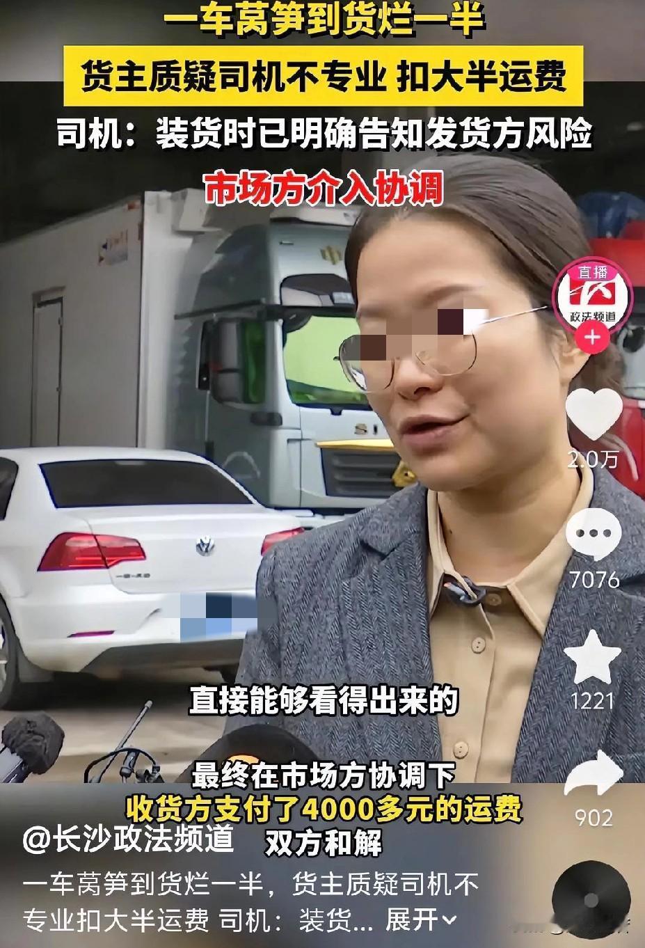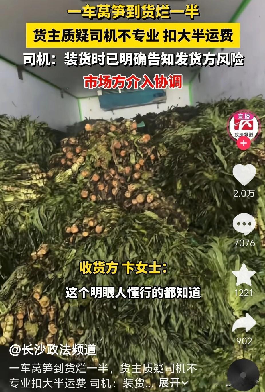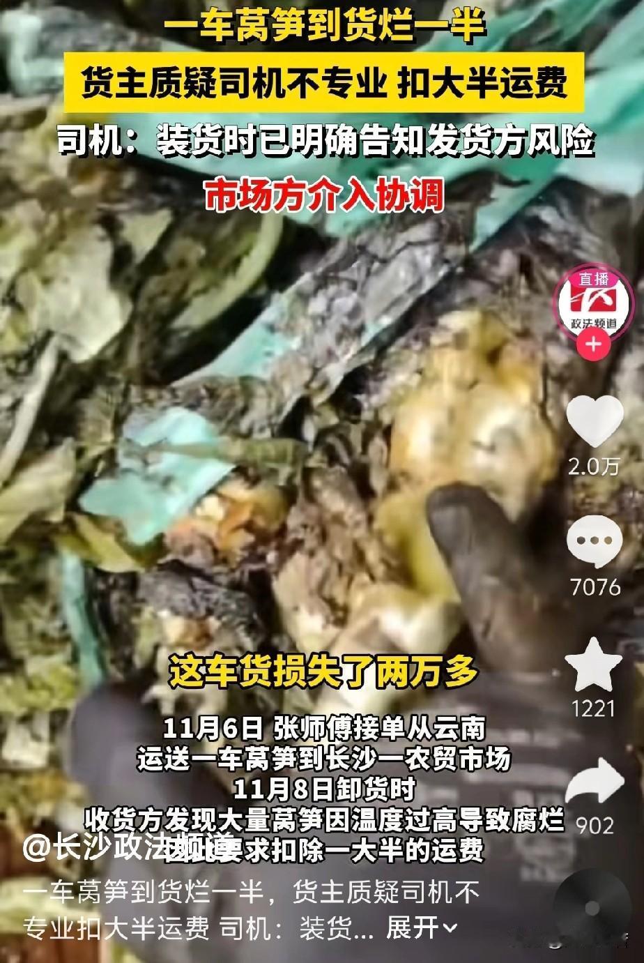 11月6日,湖南长沙,一名货车司机接到一个订单,把莴笋从云南运到长沙一农贸市场,费用为5800元。2天后,货主卸货时发现约一半莴笋因温度过高腐烂,损失超2万元,货主要求扣除大半的运费3000块钱。 据货主描述,当时打开车门的时候,莴笋尾部全部都烂了,车厢里面发热正冒着烟气,这车货损失了2万多。 货车司机张师傅认为,自己只是负责运输该批货物且装货时已明确告知发货方运输风险,因此产生的损失不应该由自己承担。 据张师傅回忆说,当时装车的时候是拉了十块整冰,从前面依次排列到后门,当时感觉有点不靠谱。所以,我跟云南发货方装货的时候,提示他们这样装车打冷效果不好,并告知没留风道。还有他们并没有在车厢底部铺上碎冰之类的,这样很难达到降温效果。当时装车时一位小伙子说,他们经常这样装,没有问题。 收货方反驳说,这明眼人懂行的都知道,司机运输途中没有打冷,就是为了省几百块钱的油钱。我这一车损失了两万多。他说留风道这件事,绝对是一个不专业的理由,没听说卖莴笋要留风道的,只有花菜才留风道。 随之,张师傅因为扣费问题没谈好,这四天一直睡在车里,运费也没有结,此事引起了市场管理方的注意并介入协调。 市场管理方蔬菜肉食经营经理张女士表示,后续会与司机进行沟通,确认他在整个路程中的油耗,如果油耗偏高,肯定是打冷的,而且是持续打冷,如果油耗是中等,那他肯定是间歇性的打冷,这个是可以通过数据反馈,能够看出来的。 最终,在市场管理方的协调下,收货方支付了4000多元的运费,双方和解,司机接受调解并返乡。 看了视频,引起网友们的纷纷留言。一位从事装卸的网友说,这个好鉴定,我天天卸冷链车,我家卖花的,如果中间烂了,外面没烂,说明车打冷了,内部没有放冰降温,如果里外都烂了,就说明没有打冷。 一位开了十年冷链车的司机网友说,玉米、花生、莴笋、香菜、葡萄……自己会发热,靠冷藏车打冷,温度根本下不来,有经验的司机,只会拉预冷、加冰的,视频中这样的是不会拉的,只能说是小白司机遇到了小白货主。 还有一位网友说,这次不帮司机了,帮不了,一看就是间歇性打冷,不是全程打冷,全程打冷冷气会下去的。他这是间歇打冷,冷气下不去,只是表层冷。 咱们先看看《民典法》怎么解释,第832条规定,承运人需对运输途中的货物损坏负责,但若能证明损坏由不可抗力、货物自然性质或托运人过错导致可免责。 本视频中,司机需举证已尽到合理保管义务(如按照约定制冷),或证明装货方式存在缺陷由运方造成。 而司机称全程打冷但无法提供连续制冷记录,货主则无直接证据证明司机故意关闭制冷。 事情有点复杂,我查阅了相关资料,2025年另外一起运输合同纠纷中,司机师傅因未妥善运输导致莴笋损坏,被判全额赔偿损失,而视频中司机主张已提前告知风险,责任划分需结合双方合同约定及证据。 首先,这事儿就是运莴笋半道坏了,货主和司机相互甩锅——货主觉得是司机没好好开制冷、装货也没有留通风道,司机说早提醒过风险还留了证据,最后扣运费,两边都觉得冤。 其次,生鲜运输本来就容易出岔子,这事儿里双方都有点疏忽:货主没盯好装货细节,司机也没把“风险提示”落实成白纸黑字的协议,真出问题了嘴说无凭,最后只能各让一步扣运费。 最后,其实生鲜运输前就得把责任写清楚,比如谁负责制冷、装货要咋弄,不然坏了光扯皮没用,司机少挣了钱,货主亏了货,都是糊涂账。(来源:长沙政法频道)
