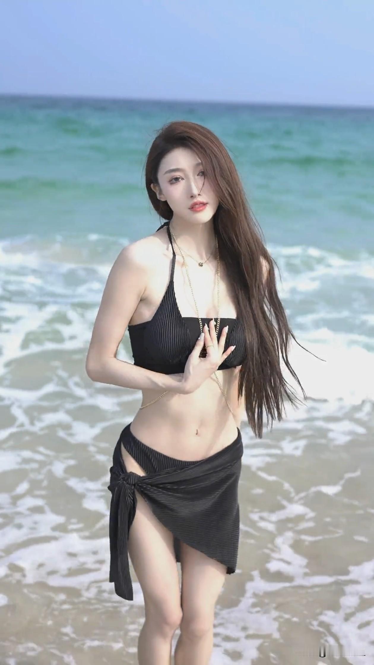 海边的松弛美学 咸湿海风掠过发梢,浪花轻吻脚踝,她立于蓝与白织就的梦境边缘。黑色比基尼利落勾勒线条,金色链饰随呼吸轻晃,在日光下碎成粼粼波光;长发被风肆意揉乱,反倒衬出眉眼的松弛与倔强。 当裙裾被潮汐打湿,每一寸肌肤都在拥抱海洋的呼吸——没有刻意的精致,只有与浪共舞的随性。夏日的浪漫从不是枷锁,而是像这样,把拘束抛进深海,让风掀动衣角,任心跳和浪声同频。 在海边,美从不是被定义的标本,而是身体与自然共振时,迸发的鲜活张力。