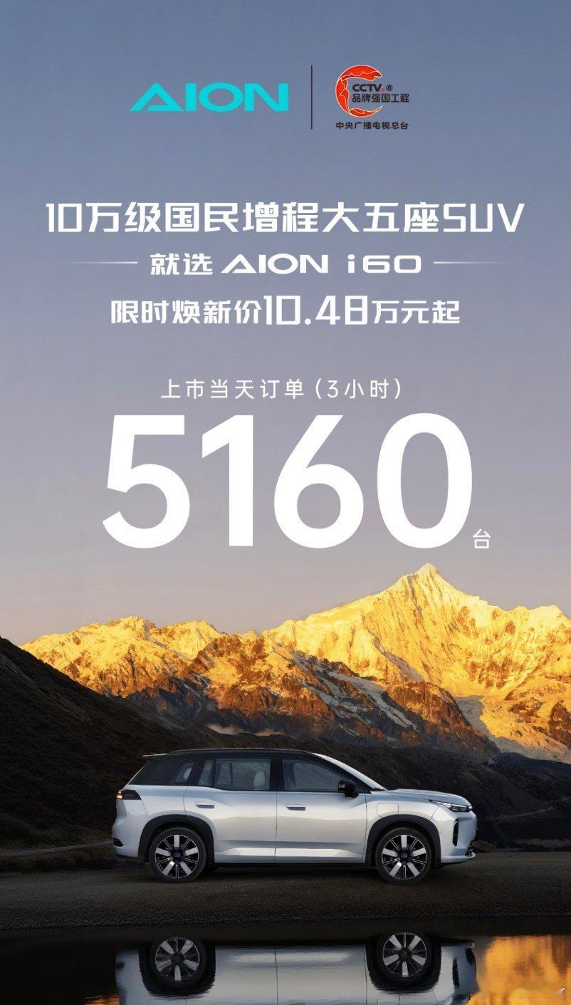上市3小时订单5160台10万级国民增程大五座SUV就选埃安i60