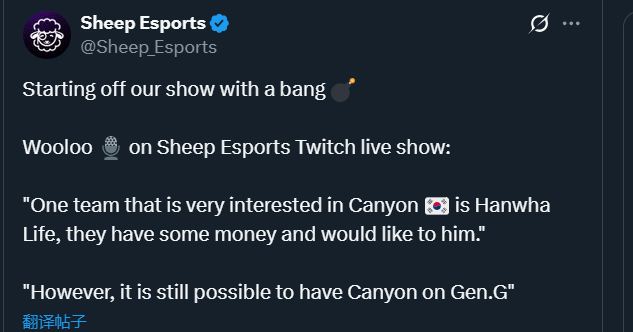 虎扑11月17日讯据外媒SheepEsports成员在直播中透露,目前LCK的转会期谈判争夺非常激烈,HLE很希望签下Canyon也有足够的资金,但是GEN也非常希望留下Canyon,Canyon留在GEN的可能性依然存在。