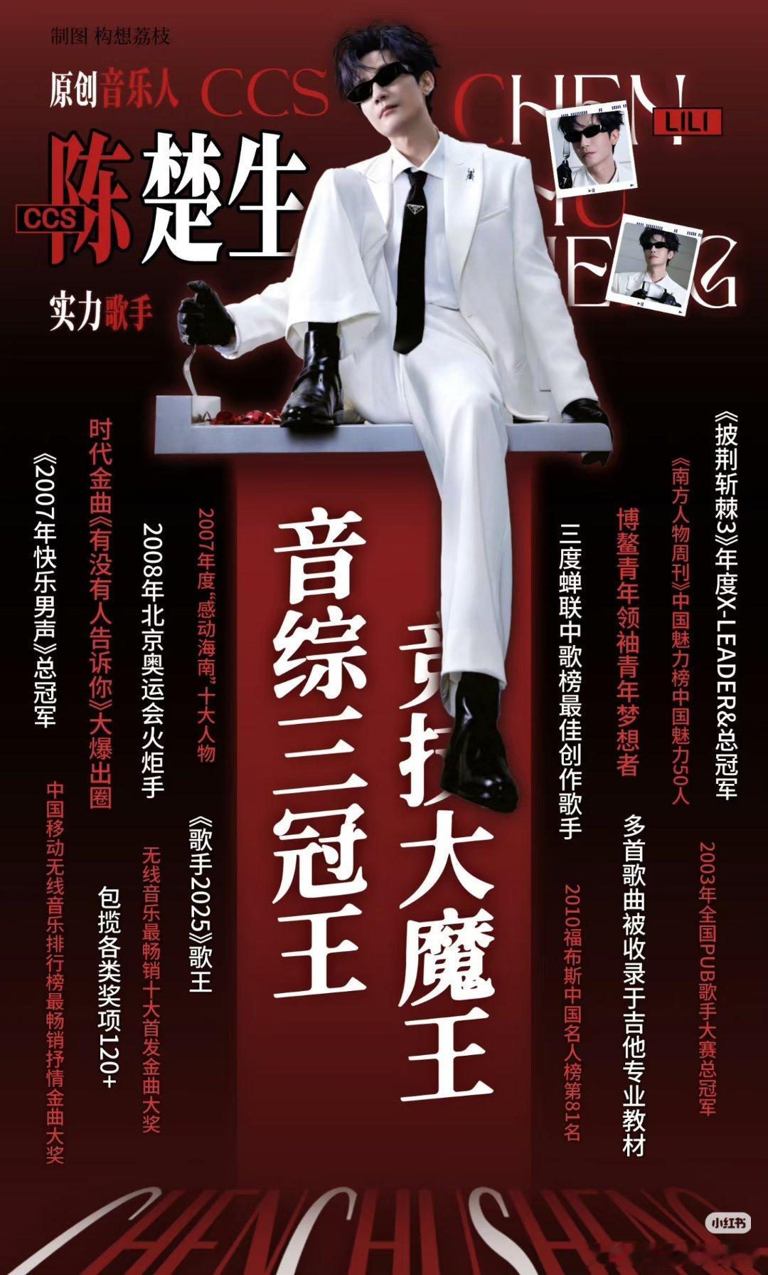 歌手不比唱功,不比奖项,不比音综冠军数量,不比现场live能力,不比创作能力,不比乐器、不比美貌,比粉丝排字? 歌手创作能力更没法比,张杰会写歌吗?陈楚生可是中歌榜连续三届最佳原创歌手!还有他会乐器吗?生哥自己就是顶级吉他手,吉他考级曲有两首曲子是生哥编的。
