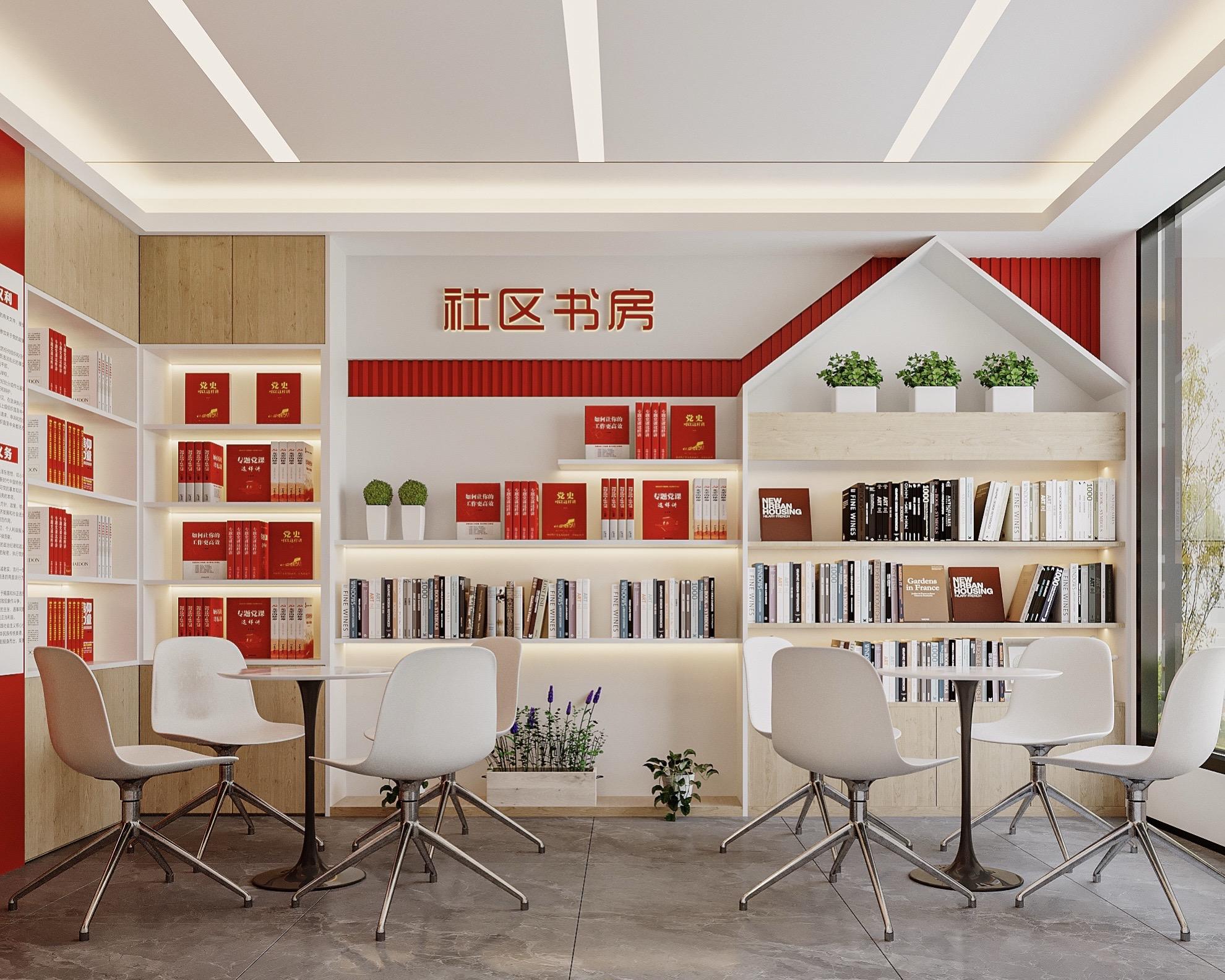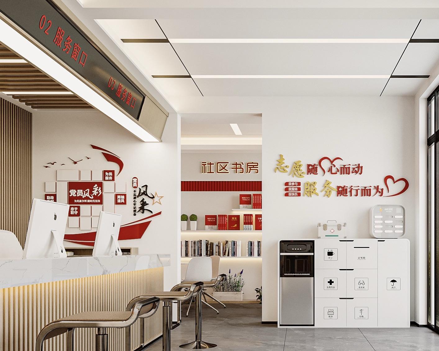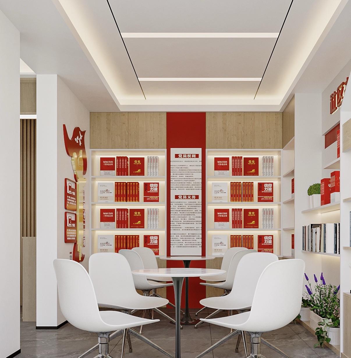 村委会装修设计。大厅融合党建文化,图书馆融合党建文化,3Dmax设计效果图