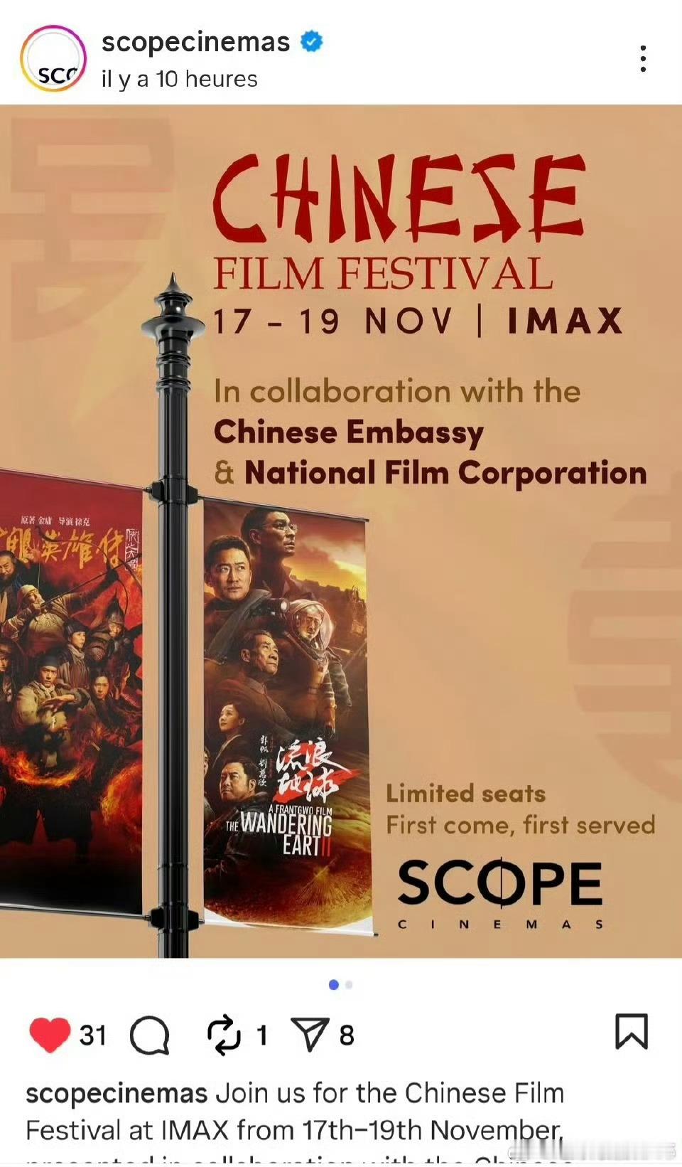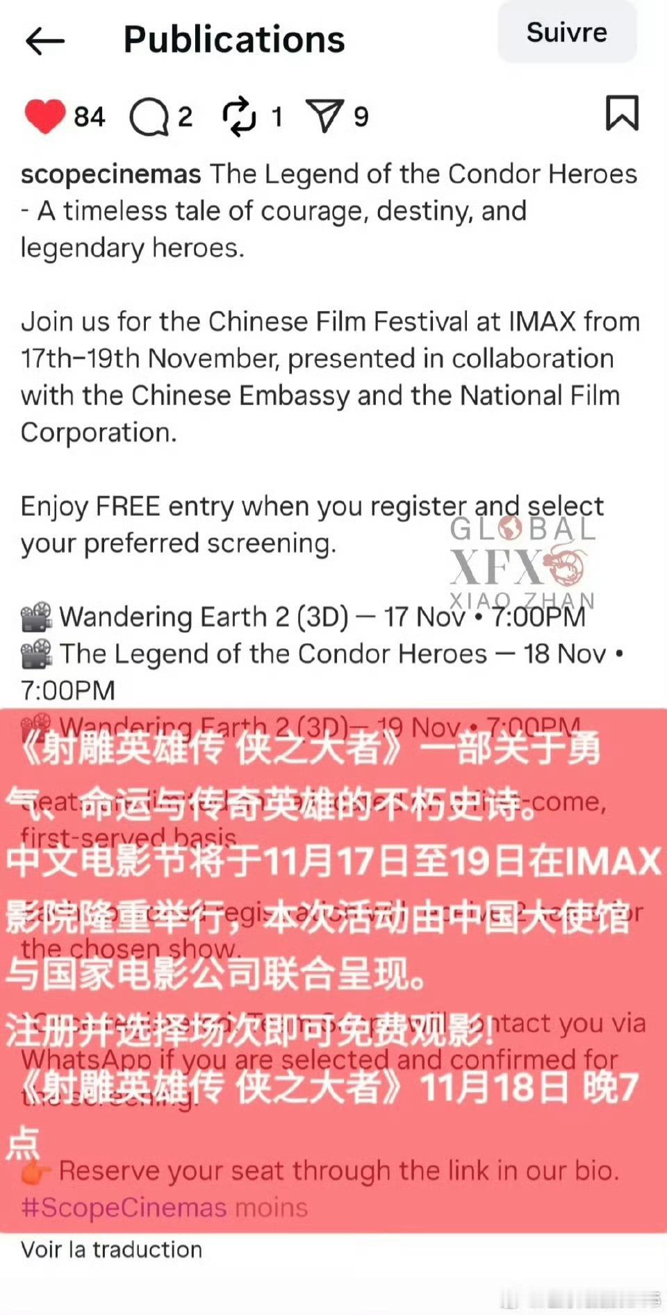 斯里兰卡中国电影节将于11月17日至19日在Scope IMAX巨幕影院隆重揭幕!本次活动由中国大使馆与国家电影公司联合呈现,备受瞩目。作为电影节的重磅展映作品,纯正武侠巨制肖战版《射雕英雄传 侠之大者》将于11月18日晚7:00 上映。