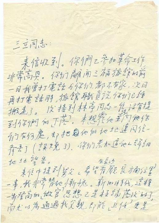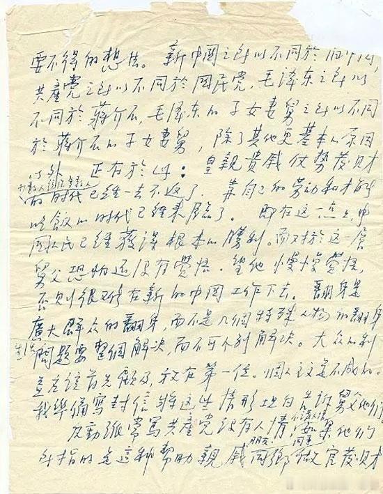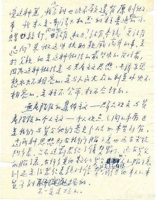 【毛泽东的儿子毛岸英罕见手迹重磅公布,打了谁的脸?】导 语下面是一封毛岸英于1949年10月24日写给表舅向三立(杨开慧舅父向理卿之子)的信。之所以提这封信,一方面是因为毛岸英的手迹比较罕见,另一方面,其中记述了毛岸英是如何回复自己的舅父杨开智要求在长沙谋一个厅长职位的要求:“我非常替他惭愧。”三立同志:来信收到。你们已参加革命工作,非常高兴。你们离开三福旅馆的前一日,我曾打电话与你们,都不在家,次日再打电话时,旅馆职员说你们已经搬走了。后接到林亭同志一信,没有提到你们的“下落”。本想复他并询问你们在何处,却把他的地址连同信一齐丢了(误烧了)。你们若知道他的详细地址望告。 来信中提到舅父“希望在长沙有厅长方面位置”一事,我非常替他惭愧。新的时代,这种一步登高的“做官”思想已是极端落后的了,而尤以通过我父亲即能“上任”,更是要不得的想法。新中国之所以不同于旧中国,共产党之所以不同于国民党,毛泽东之所以不同于蒋介石,毛泽东的子女妻舅之所以不同于蒋介石的子女妻舅,除了其他更基本的原因以外,正在于此:皇亲贵戚仗势发财,少数人统治多数人的时代已经一去不复返了。靠自己的劳动和才能吃饭的时代已经来临了。在这一点上,中国人民已经获得了根本的胜利。而对于这一层舅父恐怕还没有觉悟。望他慢慢觉悟,否则很难在新中国工作下去。翻身是广大群众的翻身,而不是几个特殊人物的翻身。生活问题要整个解决,而不可个别解决。大众的利益应该首先顾及,放在第一位。个人主义是不成的。我准备写封信将这些情形坦白告诉舅父他们。反动派常骂共产党没有人情讲人情,如果他们所指的是这种帮助亲戚朋友、同乡同事做官发财的人情的话,那么我们共产党正是没有这种“人情”,不讲这种“人情”。共产党有的是另一种人情,那便是对人民的无限热爱,对劳苦大众的无限热爱,其中也包括自己的父母子女亲戚在内。当然,对于自己的近亲,对于自己的父、母、子、女、妻、舅、兄、弟、姨、叔是有一层特别感情的,一种与血统、家族有关的人的深厚感情的。这种特别感情,共产党不仅不否认,而且加以巩固并努力于倡导它走向正确的与人民利益相符合的有利于人民的途径。但如果这种特别感情超出了私人范围并与人民利益相抵触时,共产党是坚决站在后者方面的,即“大义灭亲”亦在所不惜。我爱我的外祖母,我对她有深厚的描写不出的感情,但她也许现在在骂我“不孝”,照顾杨家,不照顾向家,我得忍受这种骂,我决不能也决不愿违背原则做事。我本人是一部伟大机器的一个极普通平凡的小螺丝钉,同时也没有“权力”,没有“本钱”,更没有“志向”, 来做这些扶助亲戚高升的事。至于父亲,他是这种做法最坚决的反对者,因为这种做法是与共产主义思想、毛泽东思想水火不相容的,是与人民大众的利益水火不相容的,是极不公平,极不合理的。无产阶级的集体主义——群众观点与资产阶级的个人主义——个人观点之间的矛盾正是我们与舅父他们意见分歧的本质所在。这两种思想即在我们脑子里也还在尖锐斗争着,只不过前者占了优势罢了。而在舅父的脑子里,在许多其他类似舅父的人的脑子里,则还是后者占着绝对优势,或者全部占据,虽然他本人的本质可能不一定是坏的。 信口开河,信已写得这么长,不再写了。有不周之处望谅。 祝你健康! 岸英 上 10月24日毛岸英的信让人肃然起敬。然而不幸的是,1950年11月25日,毛岸英在抗美援朝中牺牲于美军空袭,于风华正茂时血洒朝鲜战场,长眠在异国的土地上。★毛泽东与毛岸英父子合影毛岸英以自己年轻的生命实践了父亲的谆谆教诲,也为领导干部的子女树立了光辉的榜样。在庆祝中华人民共和国70周年时,国家没有忘记这位英雄——毛岸英荣获“共和国最美奋斗者”称号(来源: 毛笔书法平台)