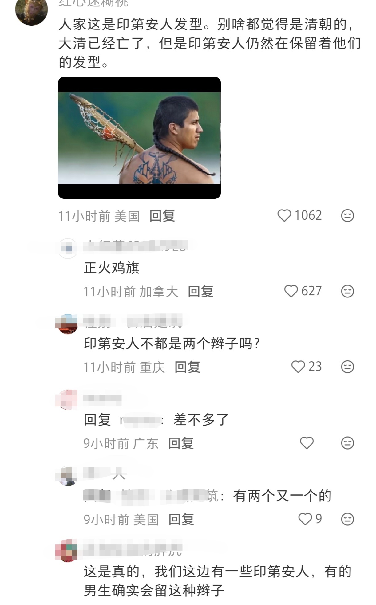 发型和打扮就能分辨你我,印第安人现在都还有在留辫子,那穿着打扮更是一目了然,他们是萨满人而已,用来掩盖那边干掉华夏土著的。