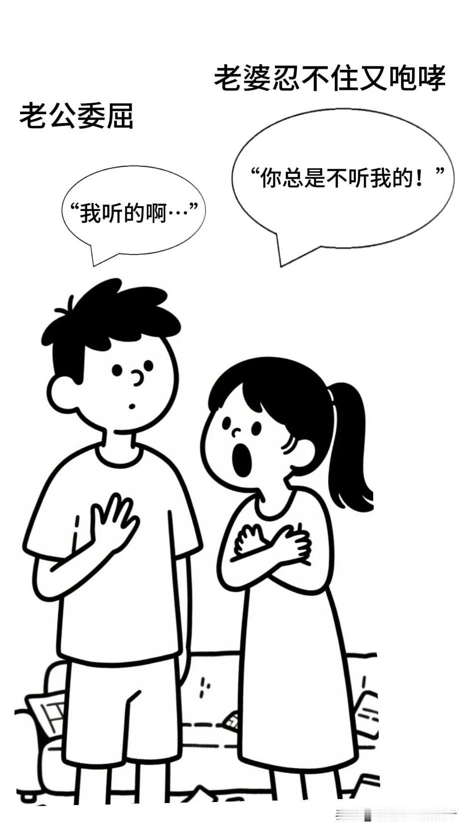 趣味漫画:老婆:“我们离婚吧!”老公:“为什么?”老婆:“你总是不听我的!”老公:“我听啊!”老婆:“那为什么每次都做错……