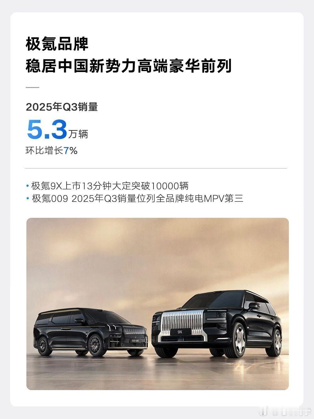 吉利Q3卖了44.3万辆新能源其中极氪5.3万,领克8.1万没看之前我还一直以为就极氪要比领克卖的多呢。另外第四季度还要出辆旗舰MPV,银河V90011.21号展会上就要首秀了,是增程,朋友们。