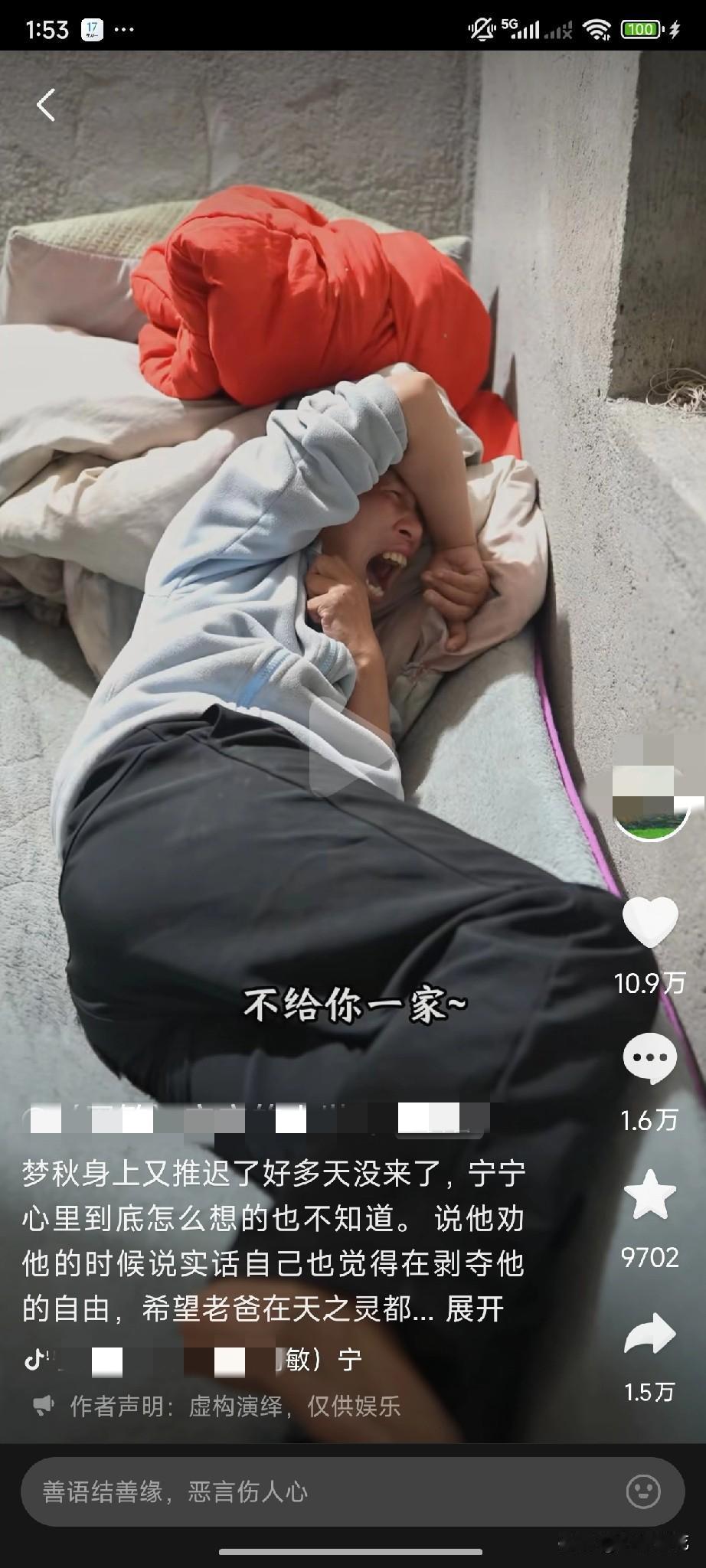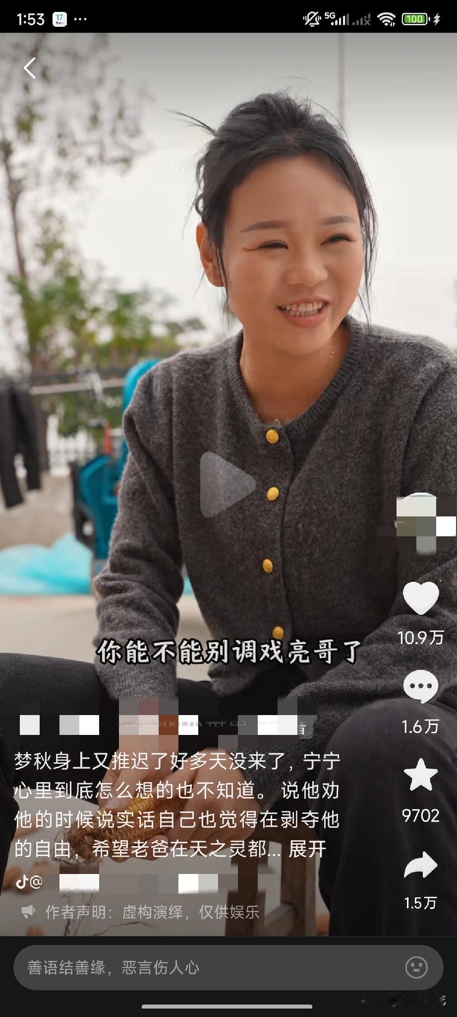 梦秋傻吗?我看不傻,她不但知道用语言表达爱,也会用表情表达爱,梦秋的眼里对亮哥的爱也是藏不住的,她见到亮哥就说:爱你~,说亮哥不嫌弃也是假的,但又必须咬紧牙关演好人设,傻秋听亮哥的话,但她就是不听宁宁的,她更不知道疼女儿妙妙,下手下脚从不心软。 这不,傻梦秋生气了,就拿女儿妙妙出气,一脚就踹过去了,动作果断,一点不拖泥带水,宁宁对她拍灰似的拍两下,她就大哭大喊,哈喇子流得到处都是,满口大黄牙。 朋友们,你们信不信?梦秋如果是个正常女人,绝对是哄男人的高手。