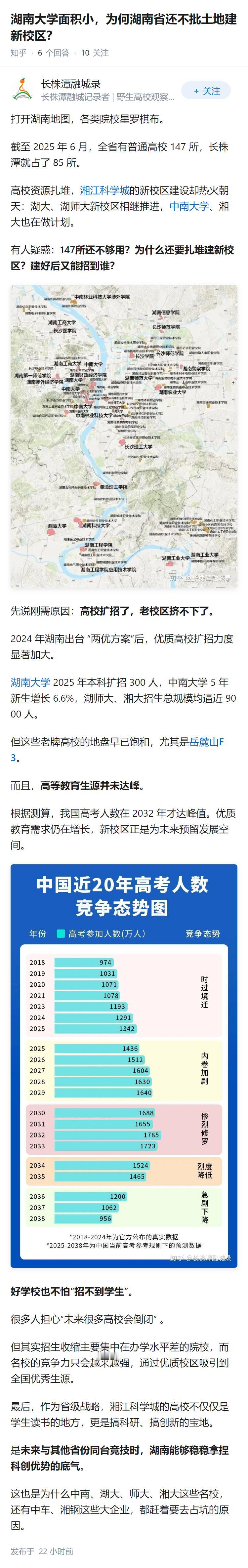 湖南大学面积小,为何湖南省还不批土地建新校区?