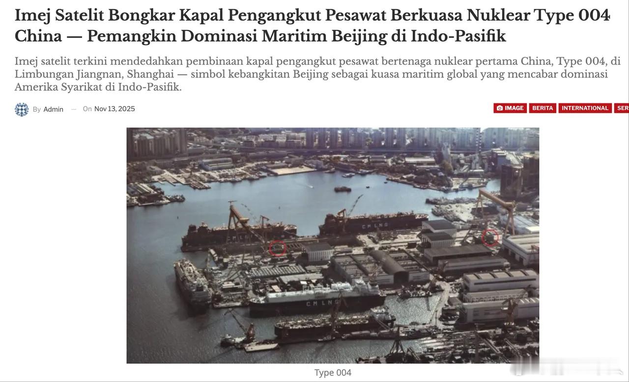 外媒,中国下一艘航母是核动力航母!《亚洲防务》11月14日报道,最新卫星图像显示,中国正在建造的004号航母,基本可以确定是核动力航母。报道说,在大连制造的这艘航母反应堆舱段、中段巨型模块、甲板主结构以及部分飞行甲板设备已纷纷露出具体轮廓,整个舰体的形状已十分清晰。基本上可以断定是核动力航母。关键是,该报道认为,核装配车间、屏蔽材料库、重吊装系统正在进一步扩建,说明004号并非单舰工程,而是有系列姊妹航母,也就是说004后中国要进入批量制造了。这暗合央视专家分析,福建舰后中国将开启航母批量制造模式。要是004服役就有另外一艘下水,那绝对霸气啊,因为外媒报道江南还有下一个航母。