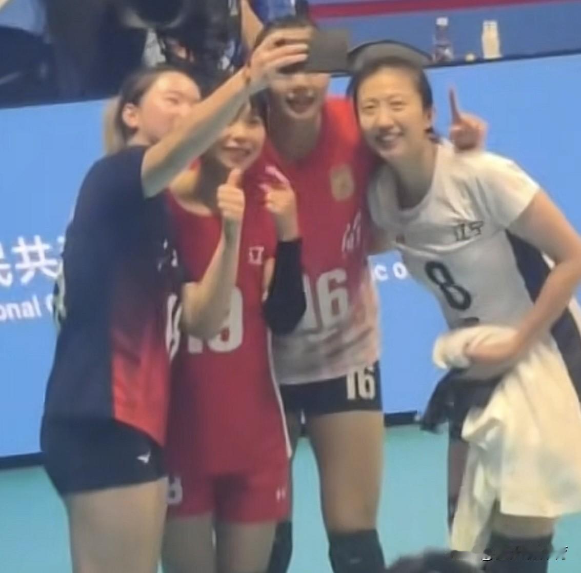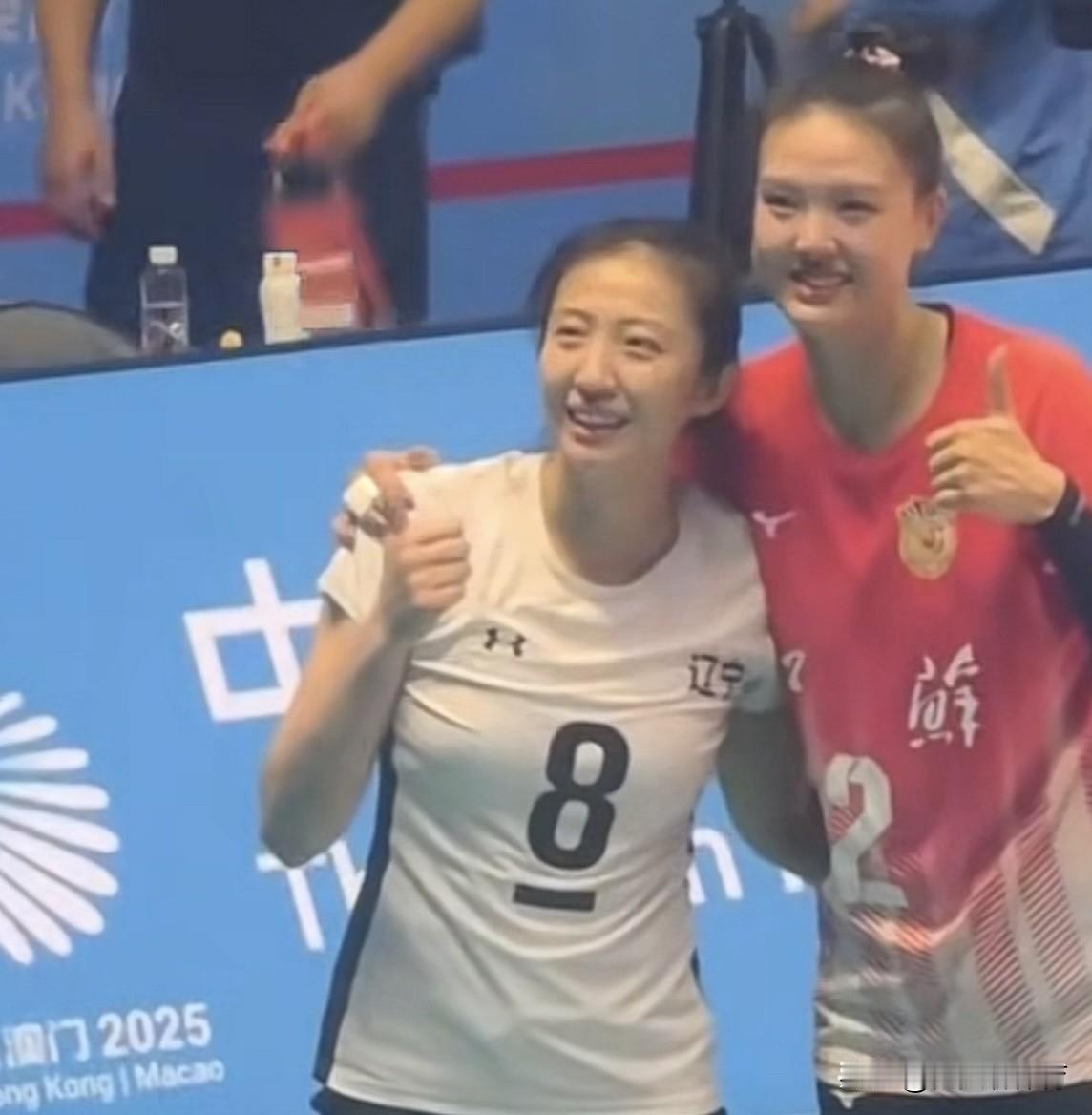 这才是真正的姐妹花啊[流泪]赛后温馨一幕!苏辽大战赛后,张常宁跑到辽宁女排这边来探班丁霞,好闺蜜见面当然有说不的话,聊不完的天了,看台上好像有人提议让霞姐和宝宝张常宁拍张照片,然后俩人就拍了一张合照,你非凡和龚翔宇也要跟霞姐拍,霞姐一看少了张常宁,赶紧招呼着张常宁过来拍照,于是就有了第四张大合照,真的是打一场少一场了,且行且珍惜吧!