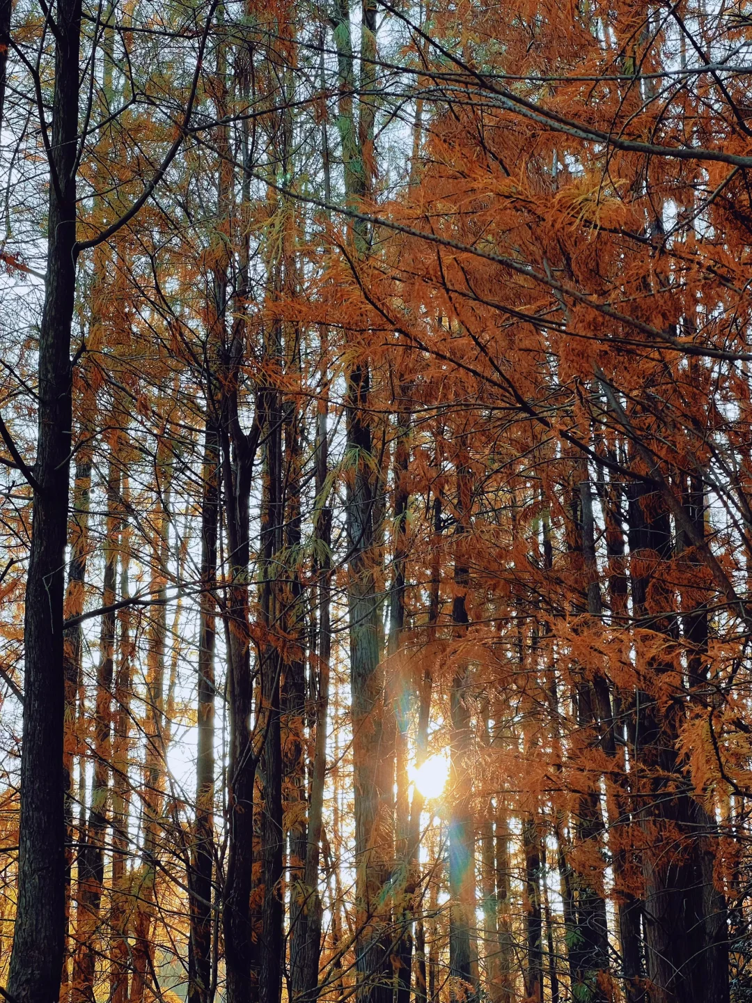 我们自己带了些零食、水果和饮料。看着光影穿过不同颜色的树叶,真的太惬意了。