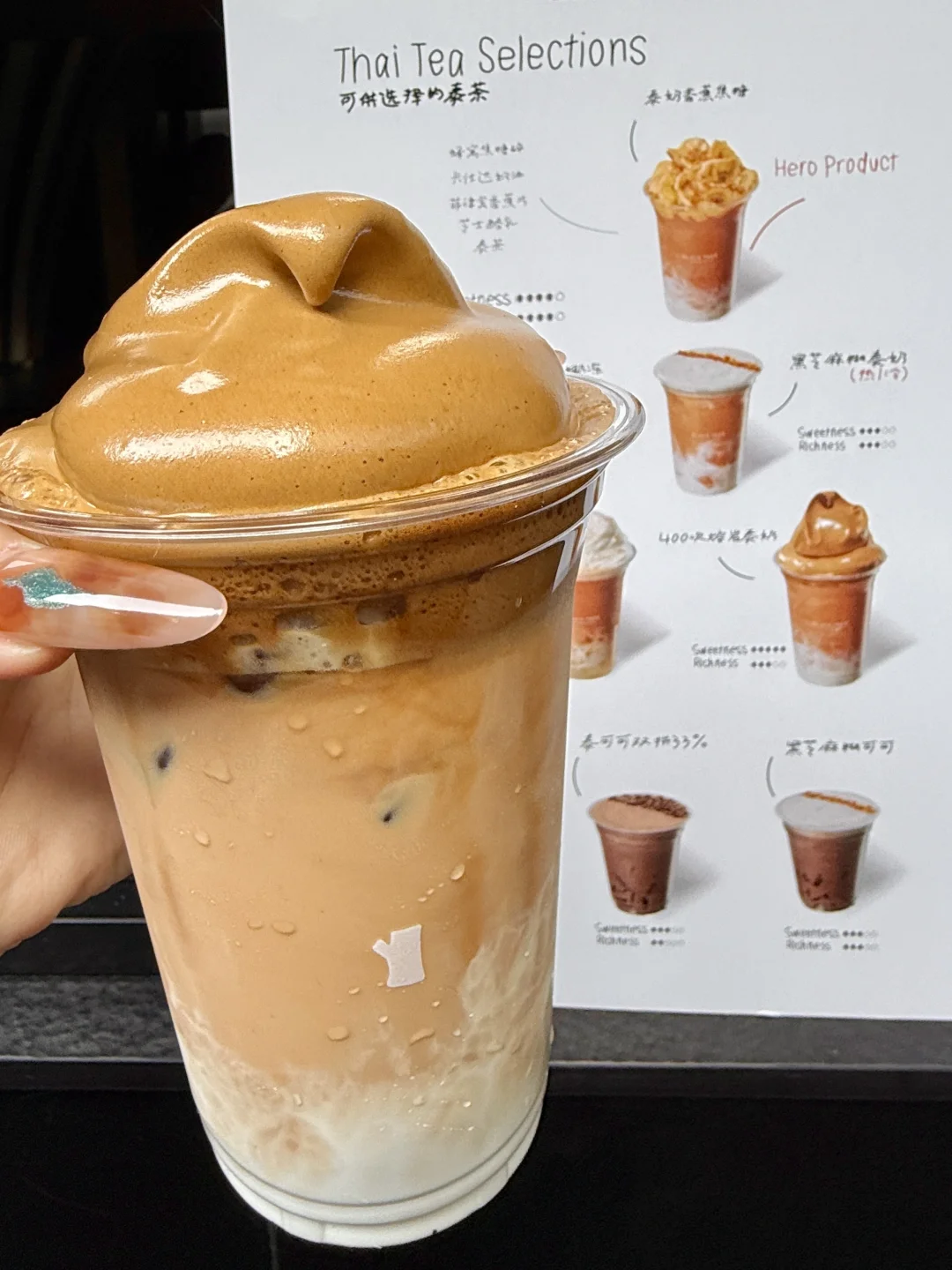 杭州终于有了!400次熔岩泰奶,微苦咖啡奶泡+浓醇泰奶,好喝死了!