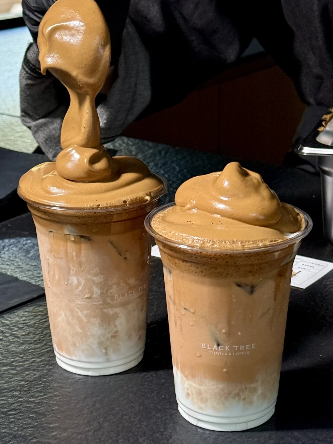杭州新开的!液体版提拉米苏泰奶小蛋糕!!! 半流体泰法酪,奶味比较醇,巧克力脑袋可以冲!! 还有400次熔岩泰奶也好喝喂
