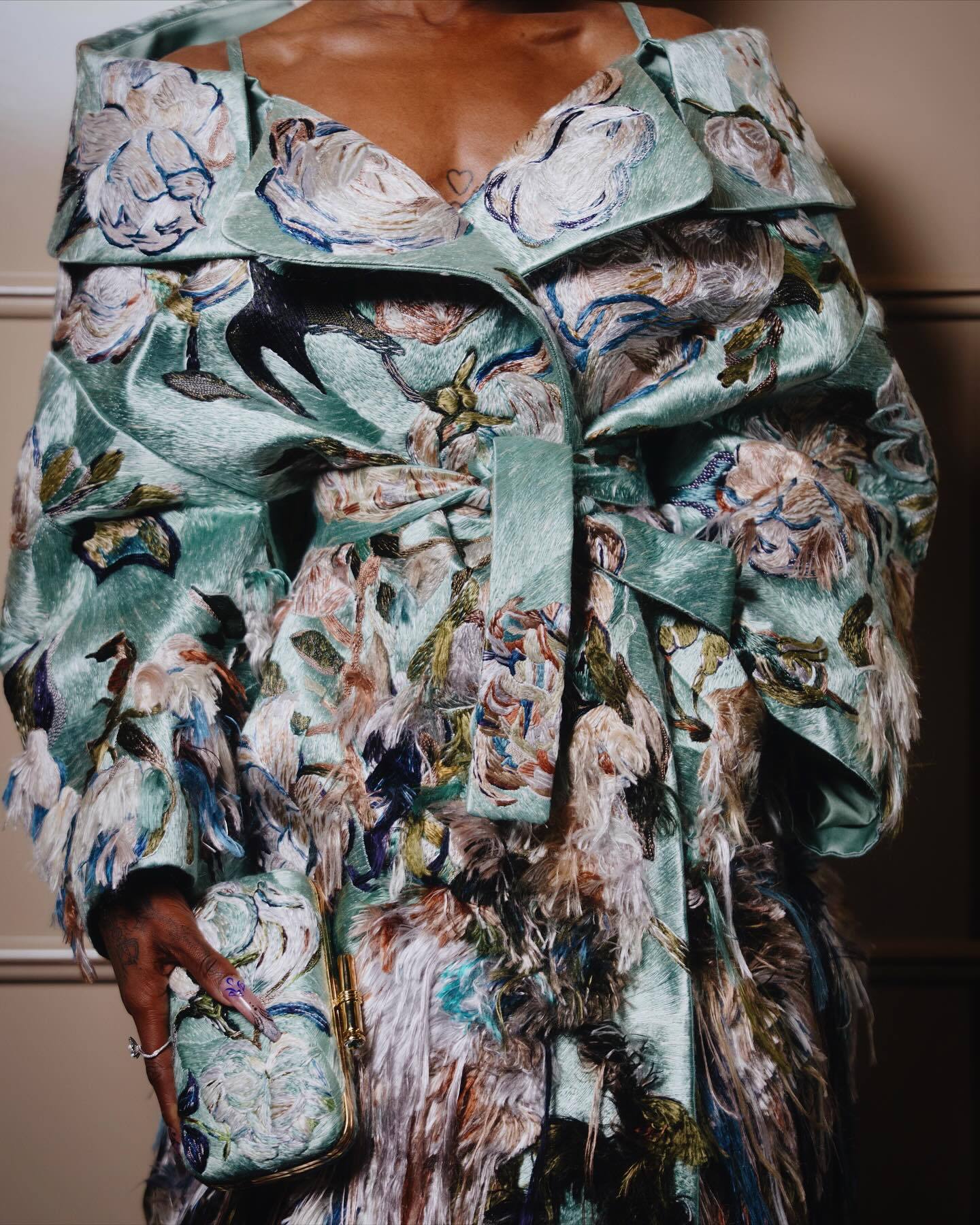 GIVENCHY S/S 2026 by Sarah Burton 这件重工刺绣裙装外套线下活动曝光了!由英国演员Cynthia Erivo 出席Governors Awards 2025演绎,版型效果是真好