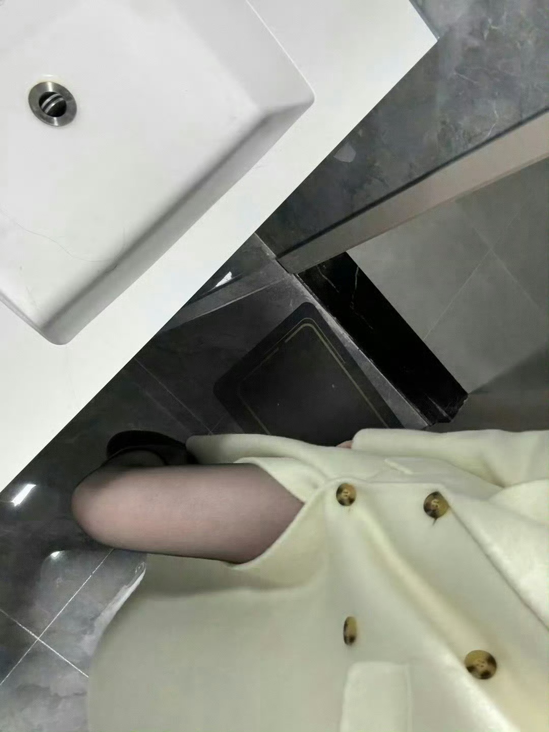 怕别人看到,穿大衣挡着了