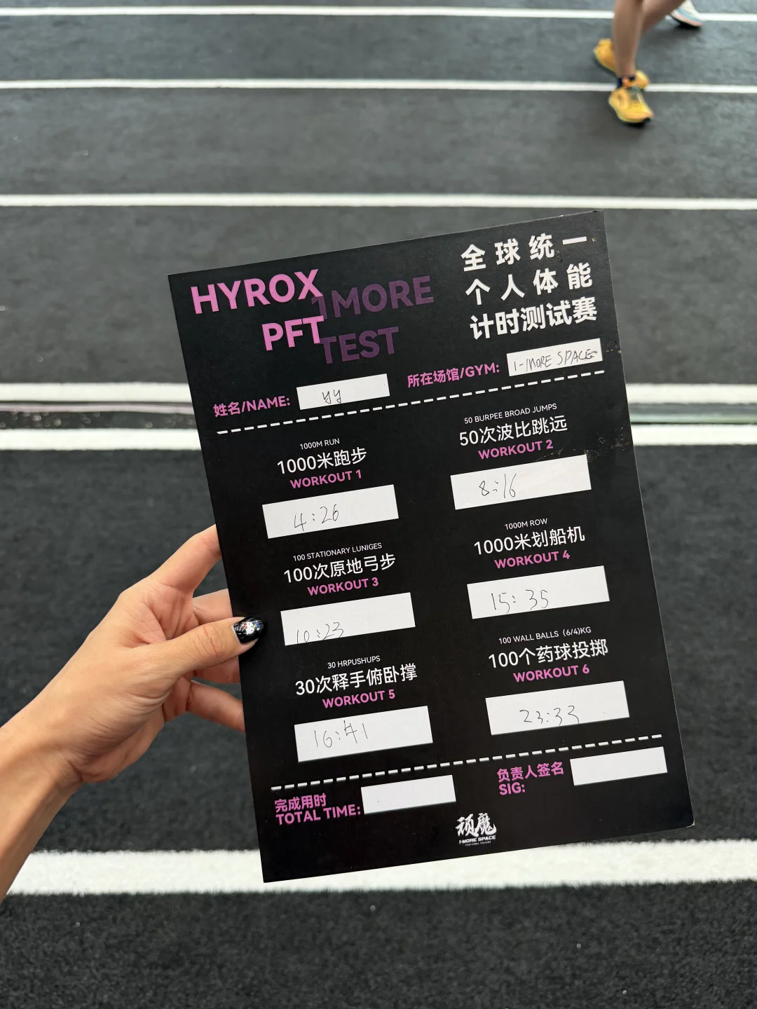 虽然十二月底就要比赛了,但因为真的太忙太忙了,只上过一次hyrox备赛课😢 看到有PFT测试就来试试,个人感受是: 除了100个药球投掷之外,其他都还好 不要上来就猛冲,容易节奏和体能被打乱 全程分配好速度,其实不会太难 !!结束后记得要对滚泡沫轴放松!! 不然第二天腿真的会痛(本人🩸💧教训,今天腿好痛) and,下次测试感觉可以再加快点速度,第一次怕自己完成不了,中间有所保留 一起期待一下十二月hyrox深圳站✌️