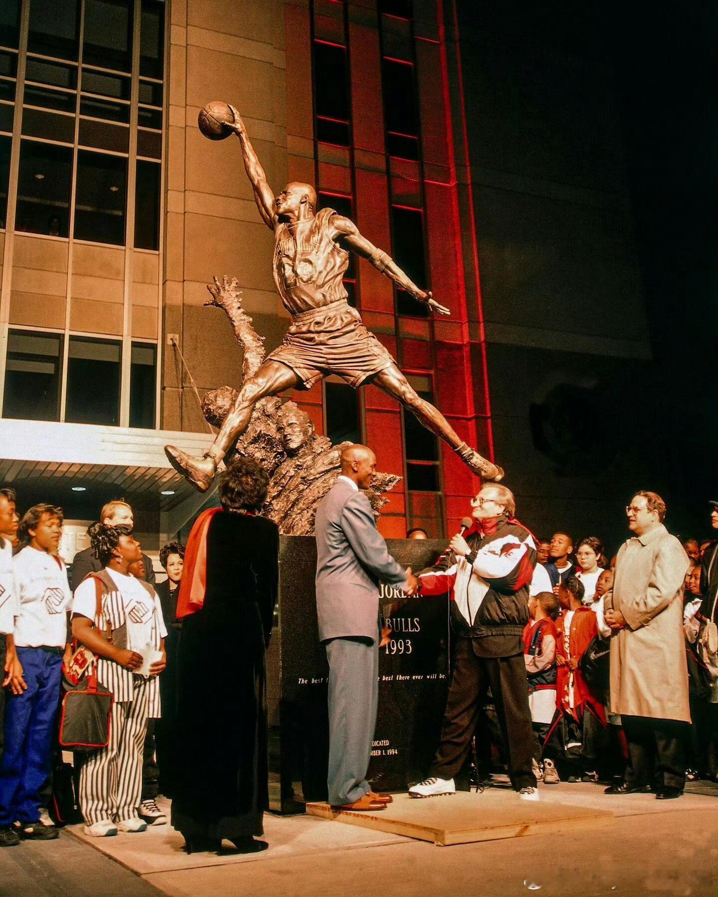 一将功成万骨枯,老流氓这雕像还把其他球员踩在脚下,这是特权,也是实力。实际上,所有球员和观众和老板都被老流氓打服了。不愧是第一雕像,还有aj那标志也是特别好看。。。。我韦雕像9分?