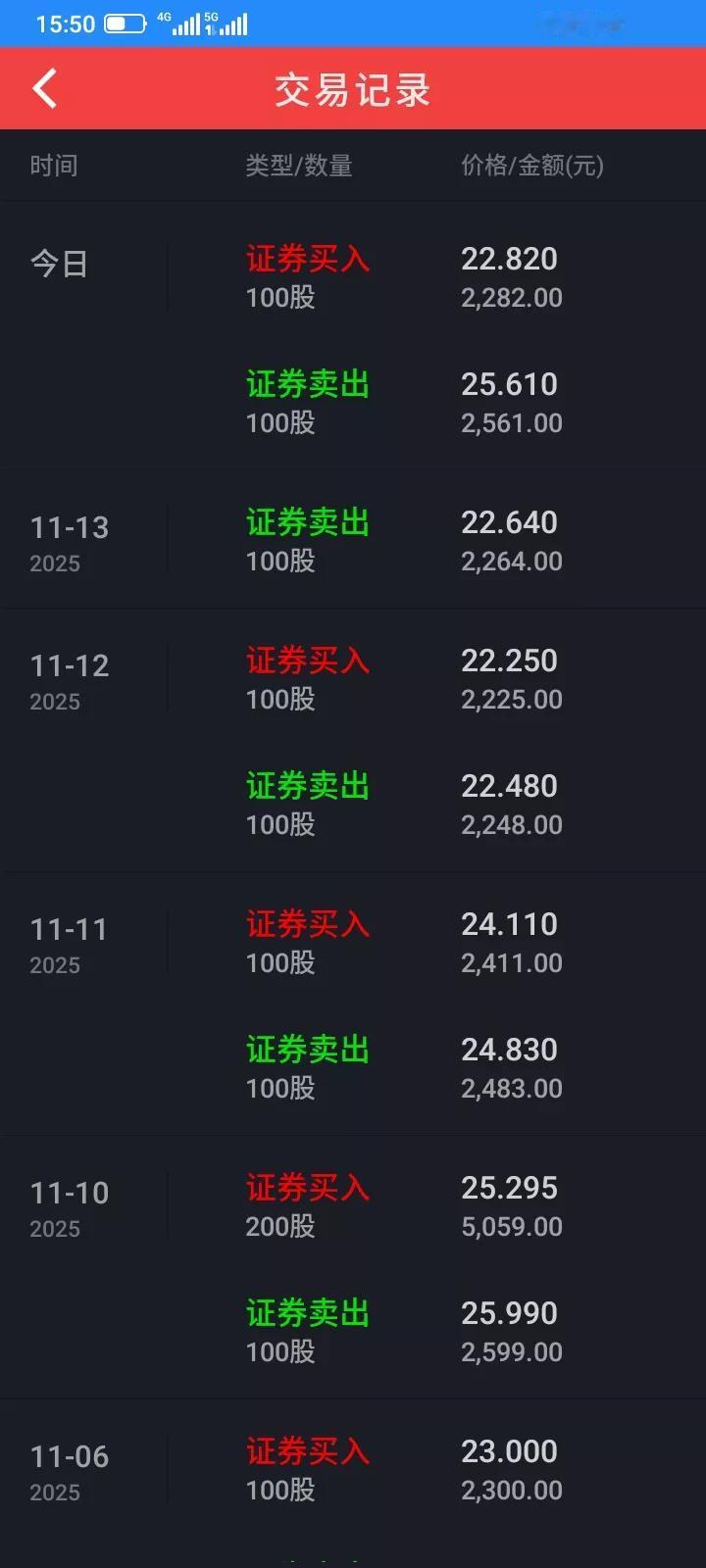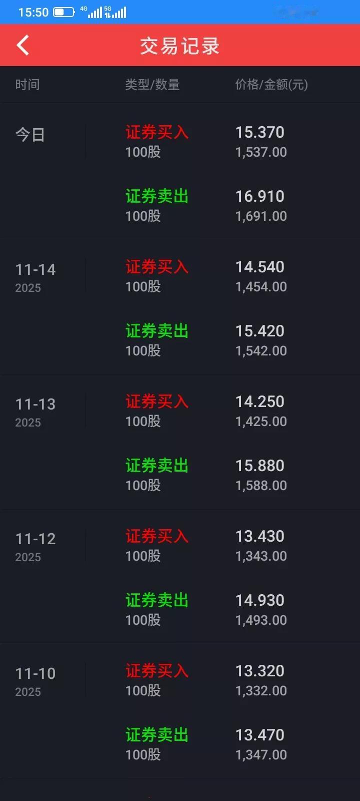2025.11.17,今天运气真好,蒙到3只涨停的股票,而且买入价都在比较低的价格,两只有股票都有100股底仓,都在低于涨停价一分钱卖掉了。做t都成功了,两只股票做t赚500多块钱,进一步降低了持股成本,降低风险,今后下跌,亏损的也只是利润,也不会那么恐慌。