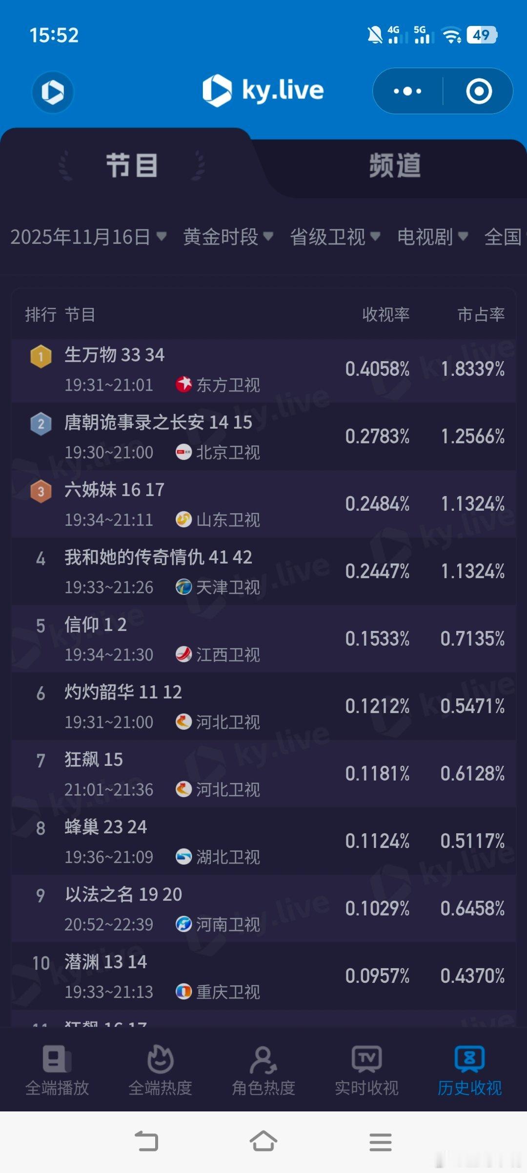 11月16日cvb收视日报四喜2.346,酷云2.9463,系数0.796隐锋1.633,生万物0.430,酷云0.4058,系数1.060唐诡3 0.254,酷云0.2783,系数0.913