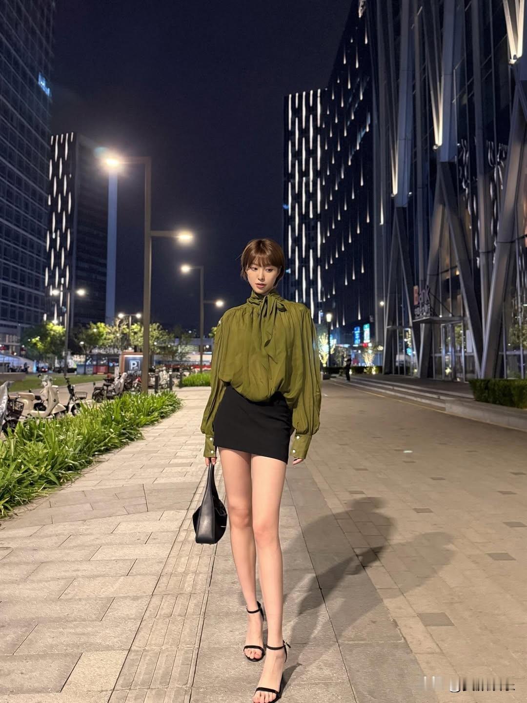 今天给大家分享两张超有氛围感的照片。一张是夜拍的美腿小姐姐,她身着露背...
