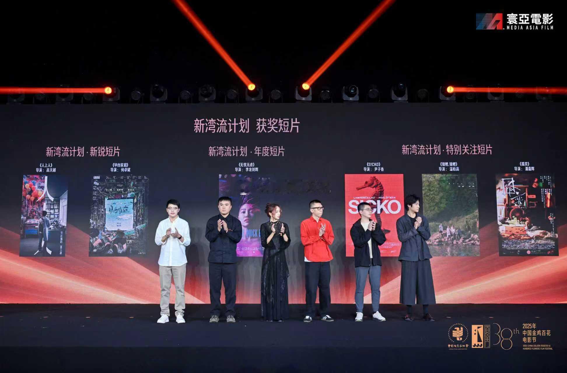 由寰亚电影推进的第六届金鸡海峡两岸暨港澳青年短片季新湾流计划收获来自大湾区上百部新导演短片,最终由李龙剑辉导演的《无忧无虑》荣膺新湾流计划年度短片奖,何卓斌导演的《曱甴家庭》、高天越导演的《人上人》获得新锐短片奖,温柏高导演的《锦鲤,锦鲤》、尹子香导演的《S!CKO》、潘嘉辉执导的《孤奕》获得特别关注短片奖。