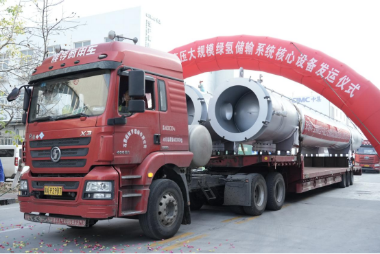 该中高压大规模绿氢储输系统及核心装备,采用了新型制造工艺和新的储输氢流程,具备领先的结构特性与优异的安全性能,更重要的是,在单位储氢输氢成本以及系统运行成本上均实现了显著优势,为下游应用端的经济性提供了坚实保障。此外,该绿氢储输系统及核心装备,通过模块化设计、工厂化大规模生产,不仅保证了产品的高质量一致性,更实现了现场的快速安装,能大幅缩短建站周期,有效助力客户加快项目投产进度。