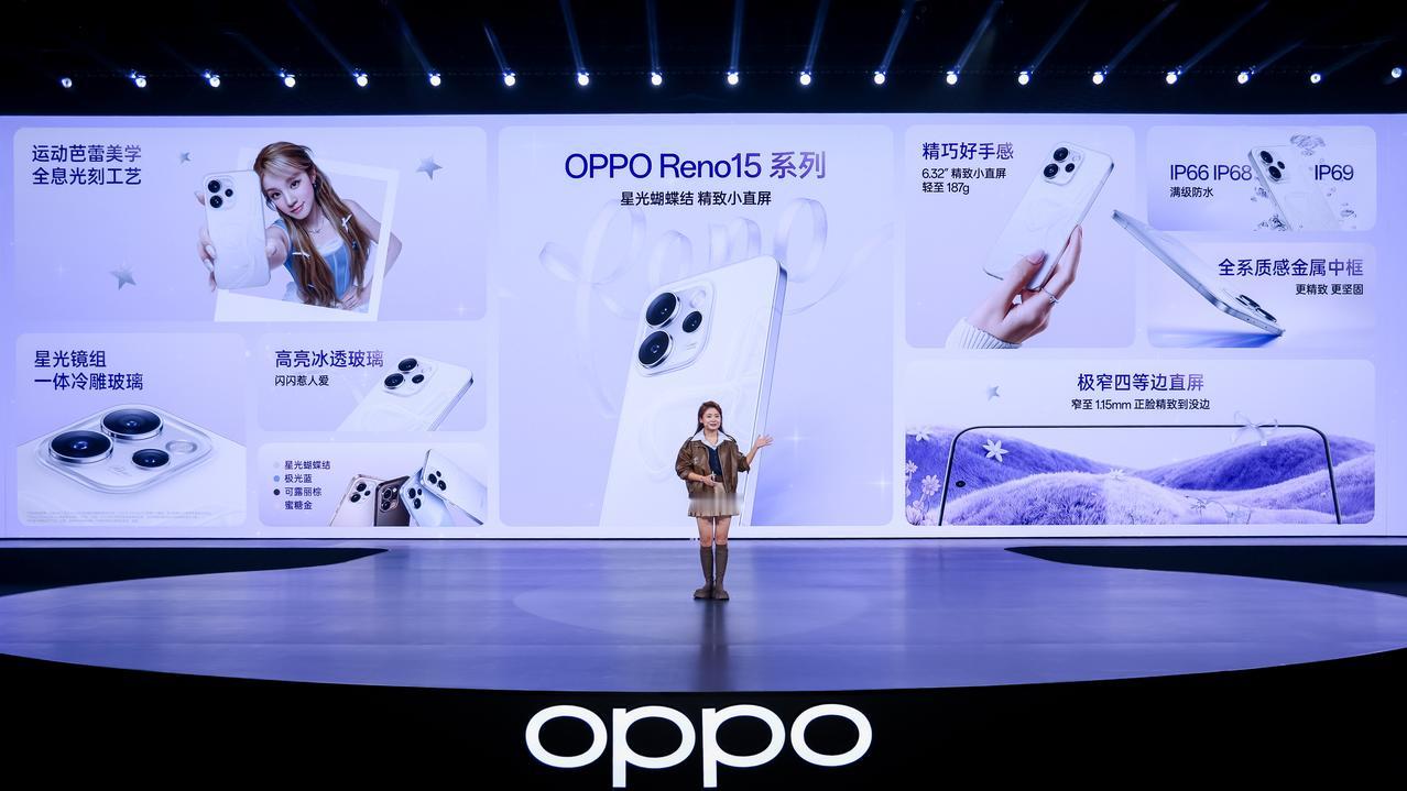Reno15系列精致小巧,全息光刻工艺的裸眼3D蝴蝶,高亮冰透玻璃透亮又不易沾染指纹,而且全系质感金属中框,6.32英寸机身,187g机身重量,手感非常舒服,对了,它1.15mm的边框,视觉冲击感很强。