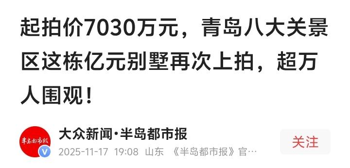 青岛八大关亿元别墅再上法拍!起拍价7030万引万人围观,背后隐藏着怎样的财富密码与时代悲欢? 在青岛八大关风景区的梧桐掩映下,荣成路10号那栋沉寂多年的别墅再次成为舆论焦点。起拍价7030万元,评估价跌破1亿元,超万人挤进法拍直播间,却无人敢轻易落槌。这不仅是场资本博弈,更是一幅映射时代变迁的浮世绘——当历史与现实碰撞,谁在等待它的归宿? 这座建筑面积645平方米的别墅,藏着半部青岛近代史。主体建筑竣工于1990年,而那座1949年落成的车库,砖瓦间仍残留着旧时代的印记。使用权限至2075年的倒计时,像悬在头顶的沙漏,提醒着人们:再辉煌的资产也难逃时间审判。 为何这栋别墅会陷入“流拍魔咒”?有知情人士透露,此前竞拍者临阵退缩的背后,是对隐性成本的担忧。物业费、修缮费、历史建筑保护限制……看似捡漏的买卖,实则是吞金巨兽。更别说那笔703万的保证金,足以筛掉九成看客。 但八大关的土地从不缺传奇。荣成路36号曾住过教育家何思源,荣成路19号留着周钟岐的北欧风情故居。每条石缝都在诉说往事,而荣成路10号就像被封印的美人,等待能读懂她沧桑眼眸的知音。 记者实地探访发现,别墅距中山公园地铁站仅三百米,墙上的“八大关近代建筑”标识在夕阳下泛着金光。这里既有都市的便利,又有避世的宁静,堪称理想居所。可当梦想照进现实,千万级门槛让多数人只剩唏嘘。 评估报告里藏着更残酷的真相:相比此前估值,资产缩水近1500万。注册估价师在2025年6月的测算中,谨慎考虑了政策调控与市场波动。这不是某栋别墅的悲剧,而是整个高端房产市场的缩影。 围观者破万的盛况背后,是当代人的财富焦虑与猎奇心理。我们一边嘲讽“有钱人的烦恼”,一边暗自计算着与目标的差距。这栋别墅像面镜子,照见每个人对阶层跨越的渴望与无力。 随着11月24日法拍钟声临近,故事迎来新转折。设置延时出价功能的竞拍规则,注定这是场心理战。会不会有神秘买家压哨出手?抑或再度流拍成定局?答案藏在青岛咸湿的海风里。 当我们在手机屏幕前围观这场财富游戏时,其实都在追问:什么才是真正值得守护的资产?是砖瓦堆砌的有形空间,还是岁月沉淀的无形价值?荣成路10号的故事,终将超越交易本身,成为这个时代的注脚。 (来源:半岛都市报、阿里法拍平台实地调研)