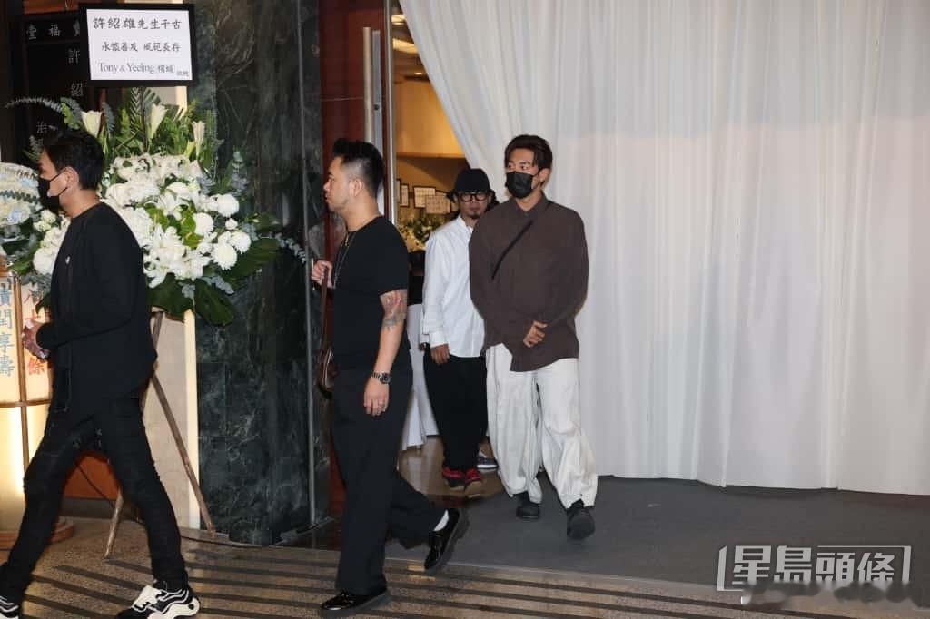 群星送別Benz雄忍痛說再見(3)下午三點開始,許紹雄圈中好友陸續抵達,關禮傑到場時直入靈堂,未有停下來讓記者拍照。之後韓馬利與老公杜燕歌、林子善到場。約下午5時,包括契女佘詩曼、黃子華、黃宗澤、譚俊彥、康華、梁靖琪、駱應鈞、陳俊安(陳志健)、李國麟、邱禮濤、麥長青等,除了黎芷珊外,陳敏之及關寶慧也在現場負責打點。黎耀祥、張子丯、杜琪峯及監製梁家樹、森美、張家輝、監製文偉鴻(Jazz)到場、TVB高層曾勵珍、蕭正楠、黄翠如等等。至於黃宗澤、譚俊彥及李國麟等在靈堂內逗留約半小時後離開。