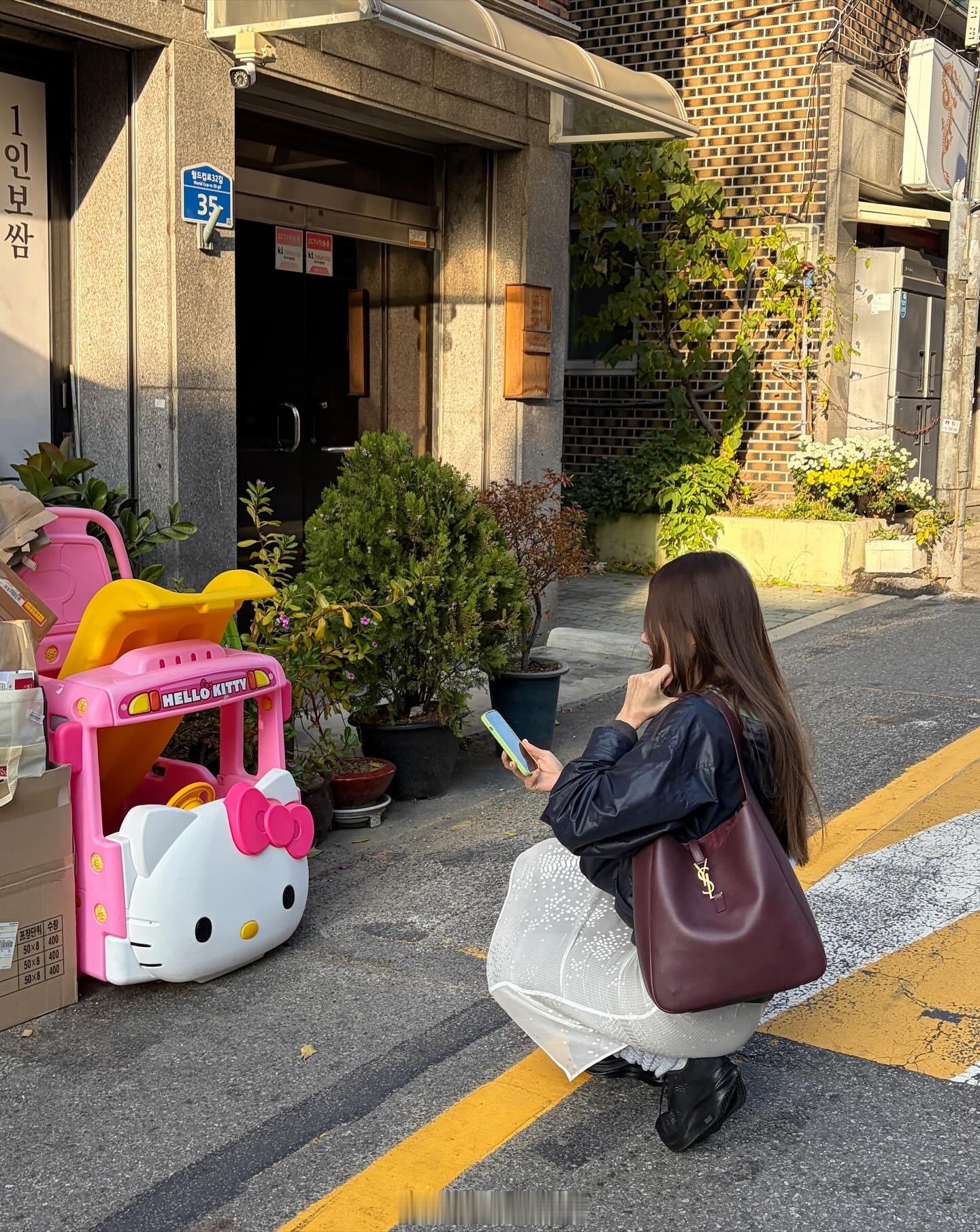 刘亦菲这条裤子挺养生,毕竟降温了肚脐眼必须护住啊
