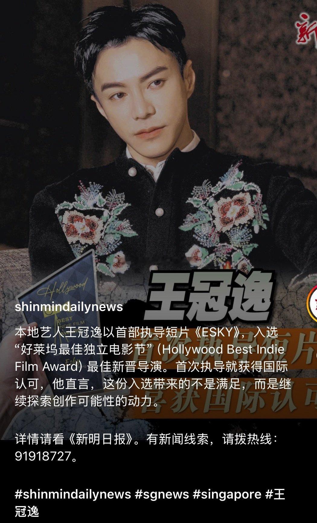 跨界惊喜!王冠逸从演员跨界执镜,首导短片就拿下国际大奖,镜头里的人文温度细腻又有力量,天赋与实力双在线的转型~ 期待他解锁更多导演佳作!