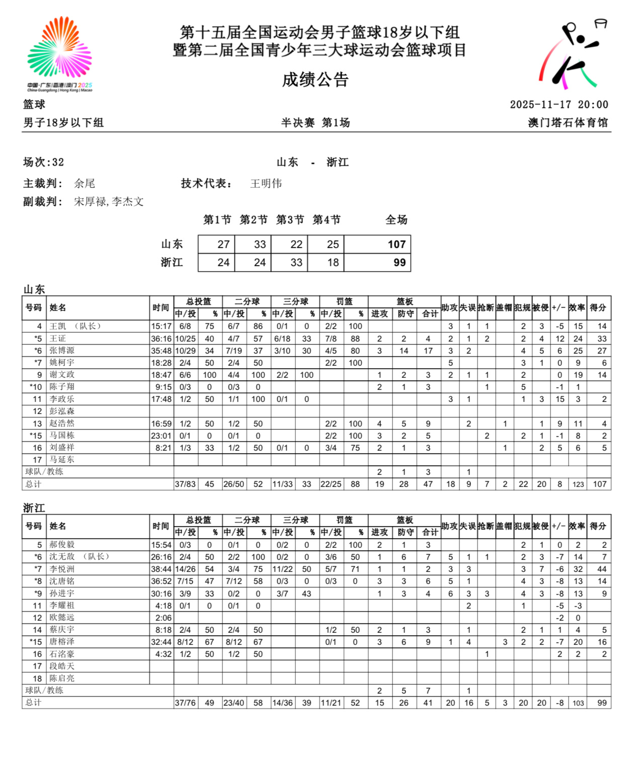 山东U18惊险战胜浙江,与广东U18会师决赛,张博源27分17篮板、王证33分,李悦洲三分22中11,空砍44分。双方场上拼得够激烈,但比赛结束也是蛮友好,队员们在互相击掌之后,还给对方的主教练鞠躬致意。U18铜牌赛和金牌赛都是明天进行,小伙子们得抓紧休息了……