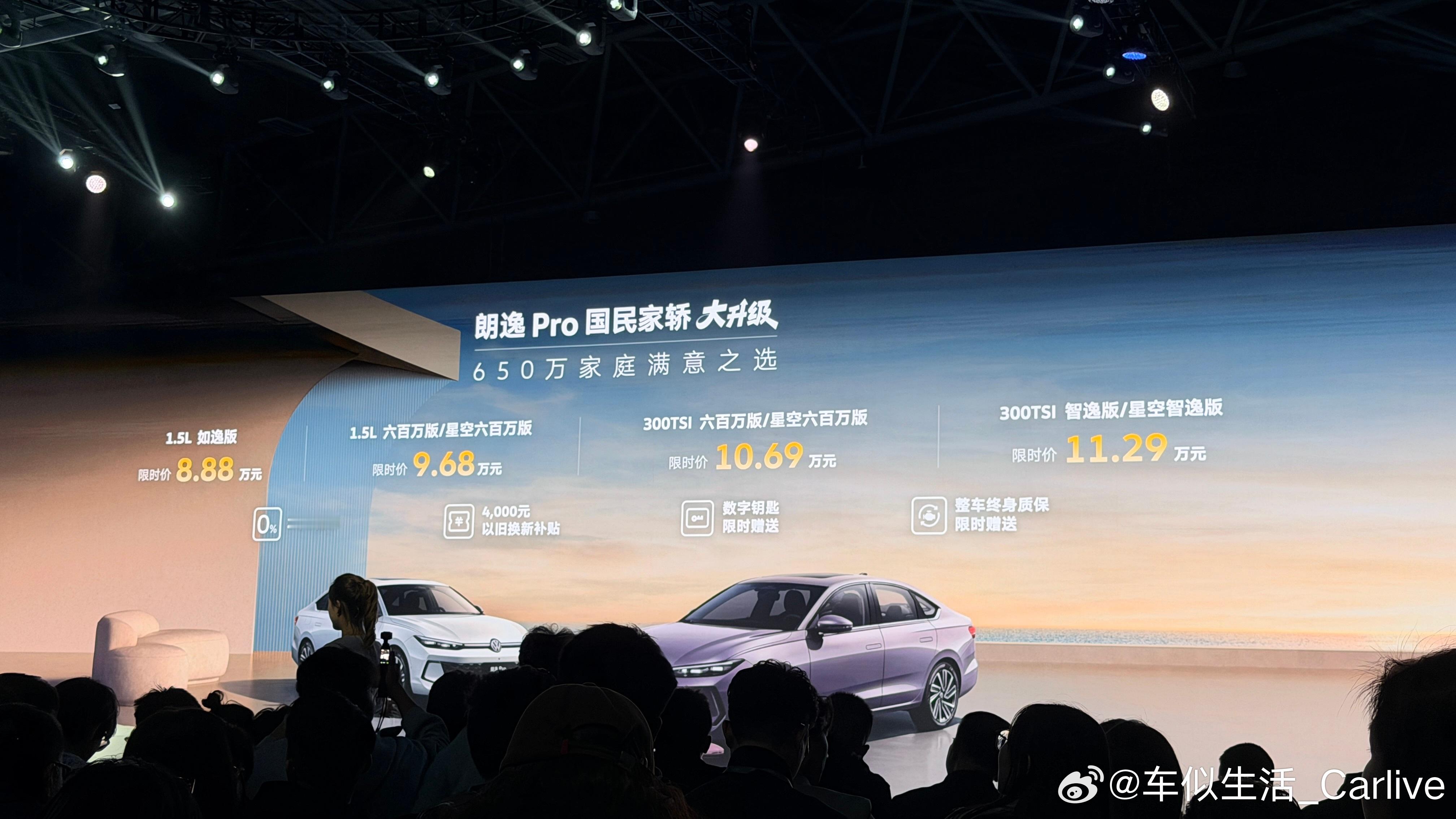 提到“国民家轿”,朗逸绝对是绕不开的名字。17年深耕市场,650万车主的选择,这份口碑可不是吹出来的。今晚朗逸Pro上市,8.88万起的限时价,让普通家庭花小钱就能享B级车质感,性价比直接拉满。家庭用户在意的空间和舒适,朗逸 Pro 也没掉链子。4720mm的车长比老款多了 42mm,2688mm的轴距空间后排乘坐也有宽敞的余量。520L的后备箱更是能轻松装下婴儿车和露营装备,周末出游毫无压力。它还特别懂不同用户的需求提供了两种不同风格的外观设计;喜欢沉稳的用户选经典版镀铬前脸,偏爱个性选星空版黑曜格栅;并且作为“Pro家族”智能化肯定不能少,驾驶辅助也安排上了,城市辅助、高速巡航走可以做到,而且新手司机能靠驾驶辅助系统轻松泊车。朗逸Pro还搭载了EA211 1.5T EVO II 的发动机,毕竟是大众多年迭代的成熟款了,耐用性经过市场检验,并且还用上的四轮独立悬架,甚至还有终身质保兜底,养车顾虑全打消。朗逸Pro这次升级,把空间、舒适、智能、性价比做到了均衡适配。这样一台懂中国家庭的“全能家轿”,难怪一直以来都是热门款。