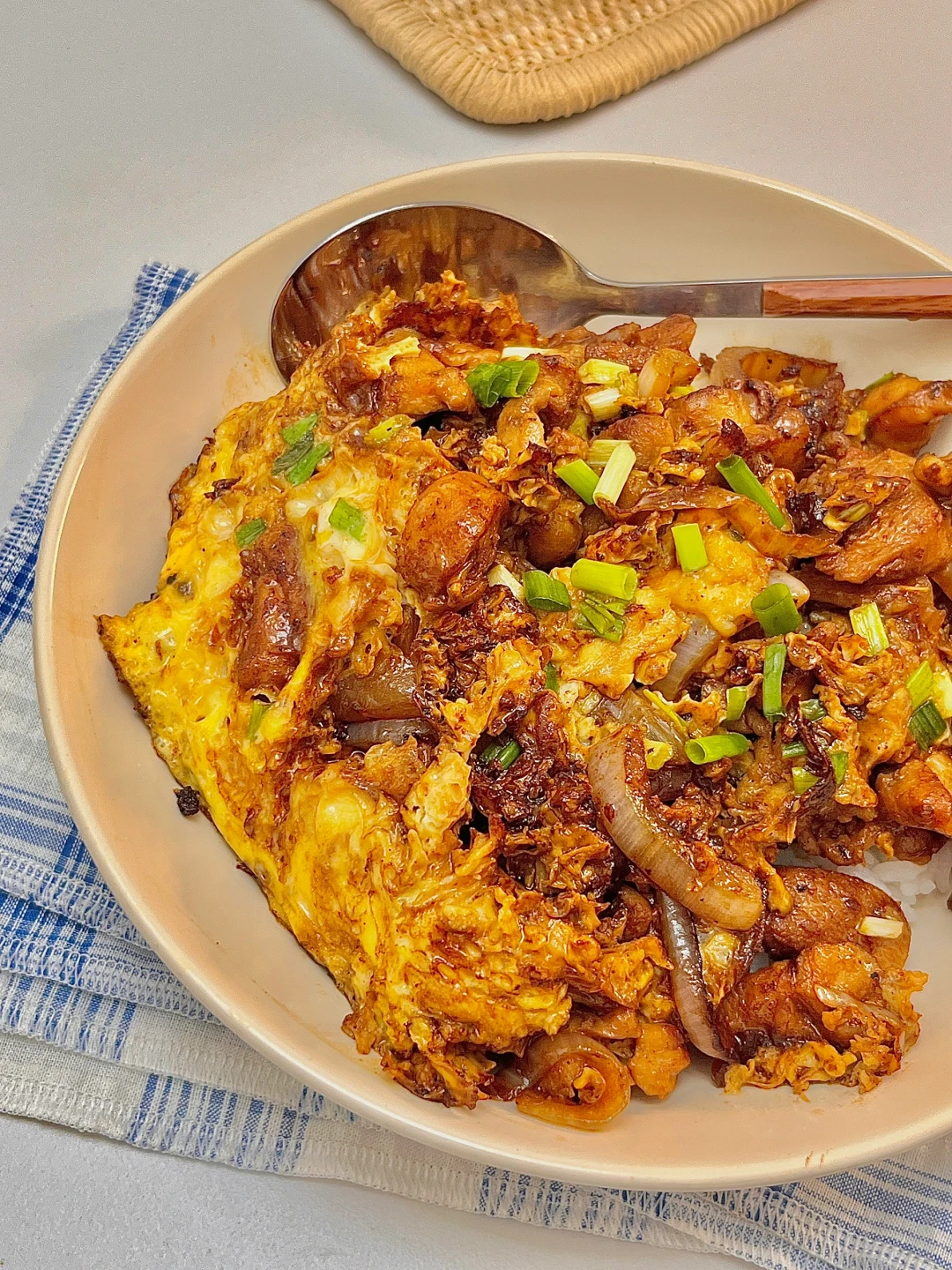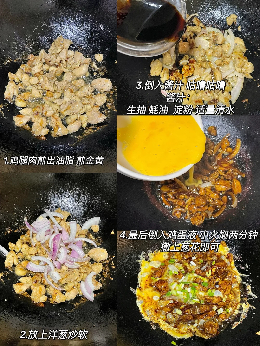 🥄今日份一人食: 滑蛋鸡腿饭 ~ 详细做法看图上~ 不知道吃啥就做滑蛋鸡腿饭~ 鸡蛋和鸡肉鲜香嫩滑~ 妥妥的下饭菜 做法简单 真的好吃绝了 喜欢的宝子快来试试耶[哇R] .