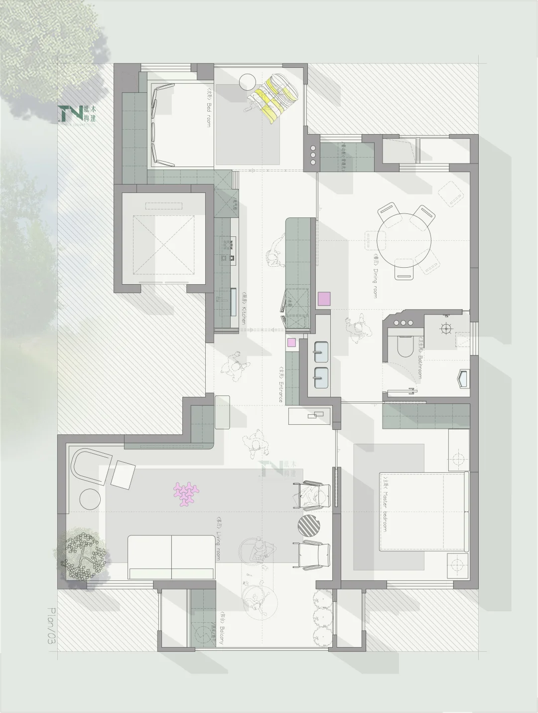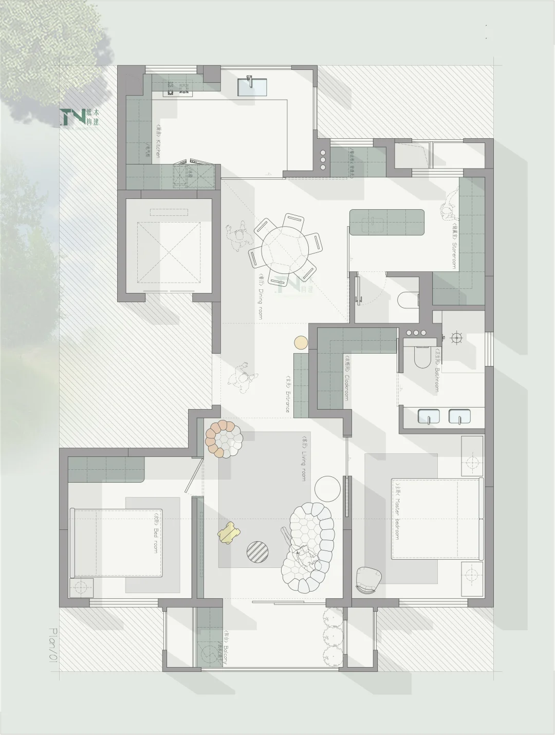 四叶草户型01/中段入户户型,一户三稿