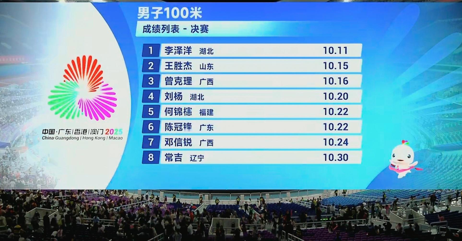 李泽洋后程太强了,10秒11夺全运会男子百米飞人大战冠军!
