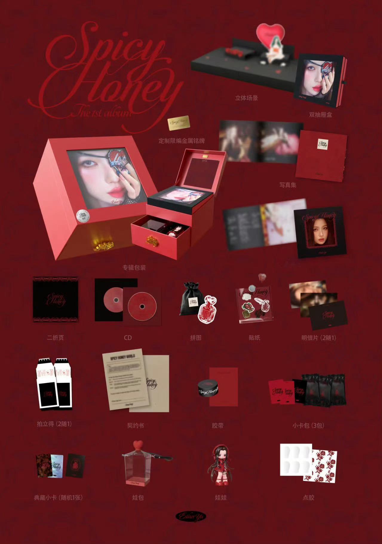 虞书欣《Spicy Honey》实体专辑来了看了一下区别就是多了一个娃娃和小卡不一样吧?不管了先给我抢到再说