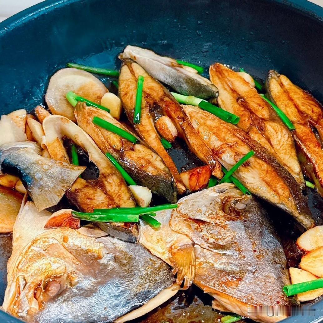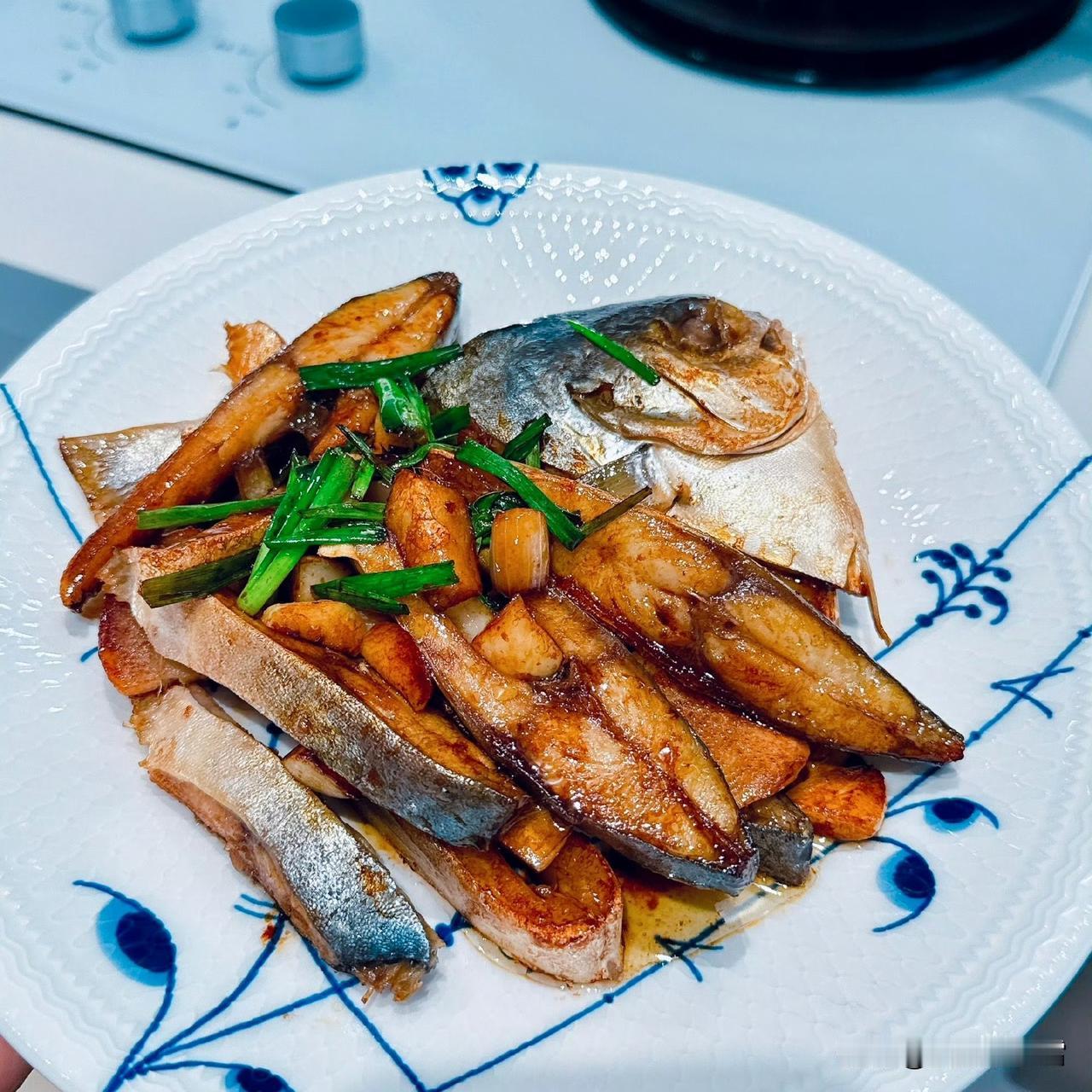 从煎得金黄的鱼块,到锅里淋上酱汁、撒上葱段咕嘟着香气,最后盛到带着蓝纹的盘子里——这一道家常烧鱼,裹着锅气,也裹着今日份的满足。