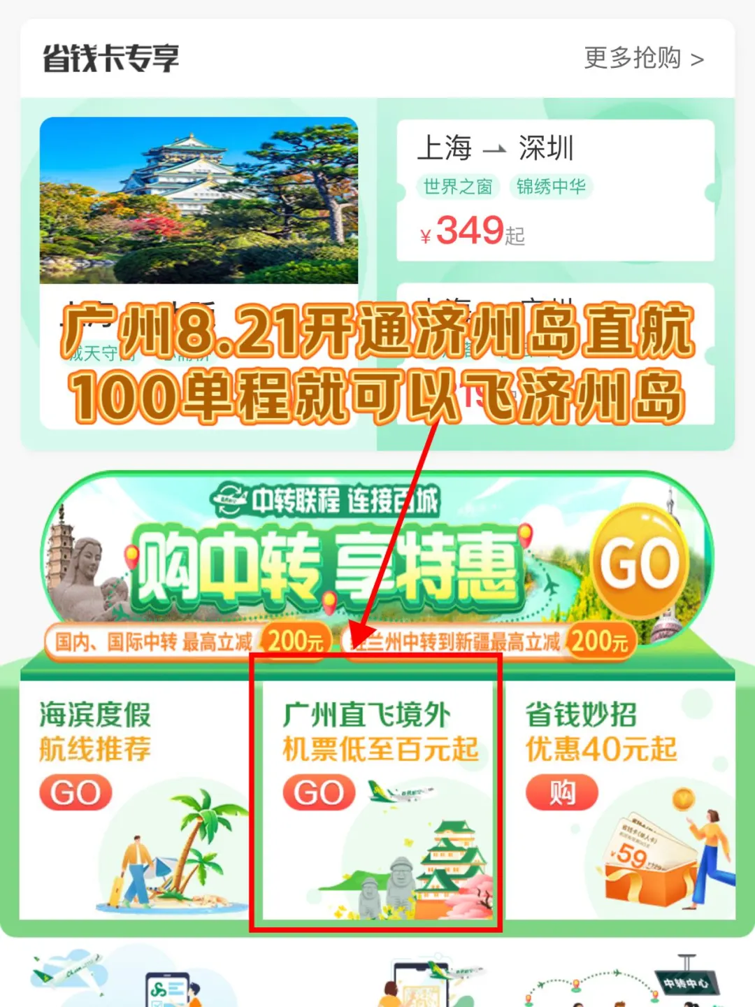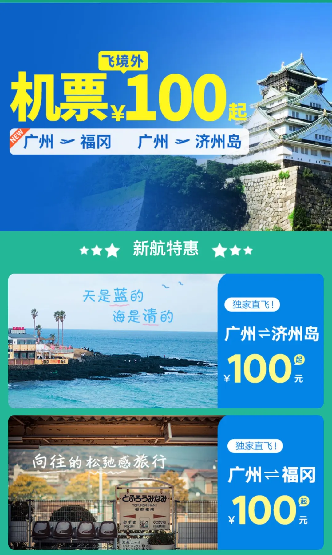 点击广州直飞境外机票百元起即可找到100元的济州岛机票!